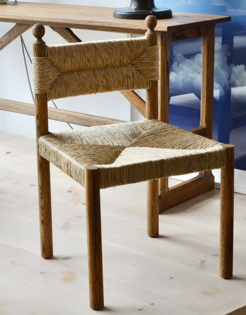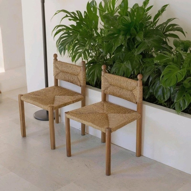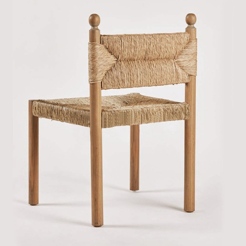 rope-woven chair for dining room, designer hotel and restaurant, hand-woven solid wood dining chair