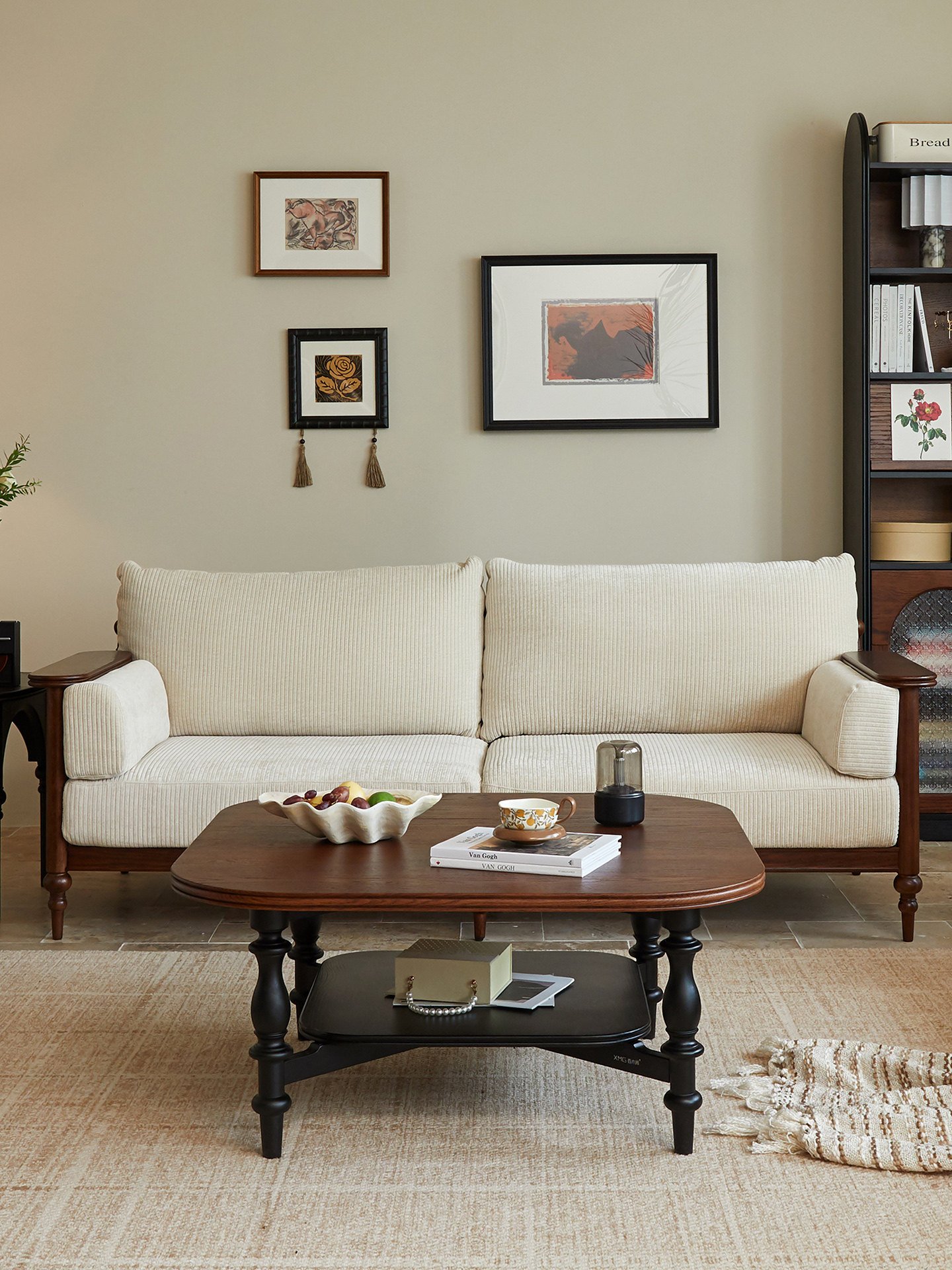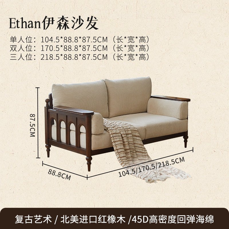 French Mid-Century Modern Fabric Sofa, Retro Solid Wood Frame Sofa, Straight Three-Seater for Small Living Spaces, Home Living Room Furniture