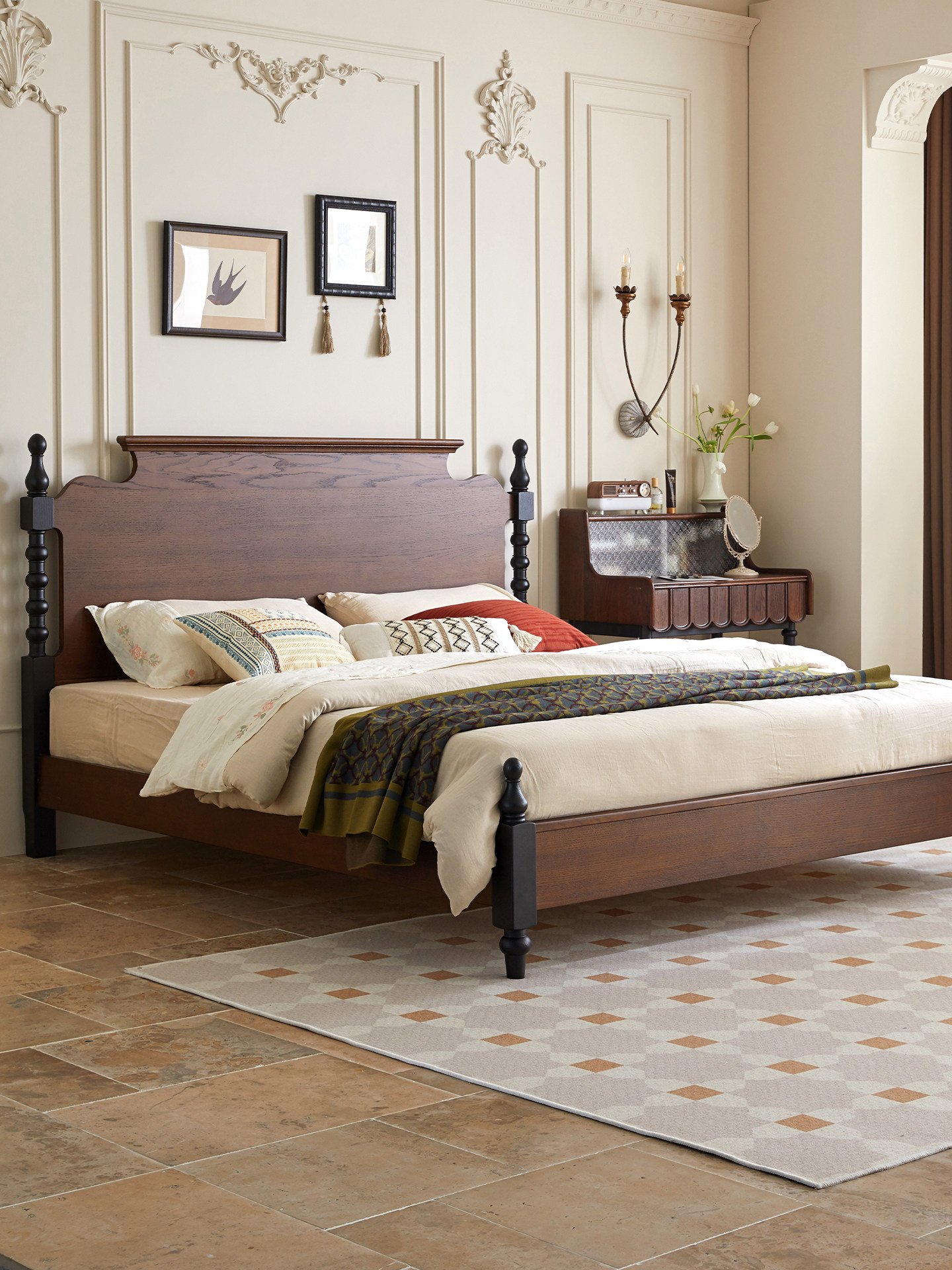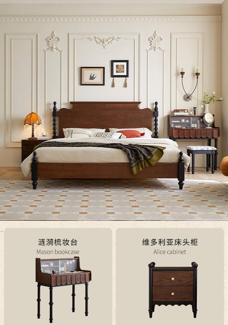 French Retro Solid Wood Bed