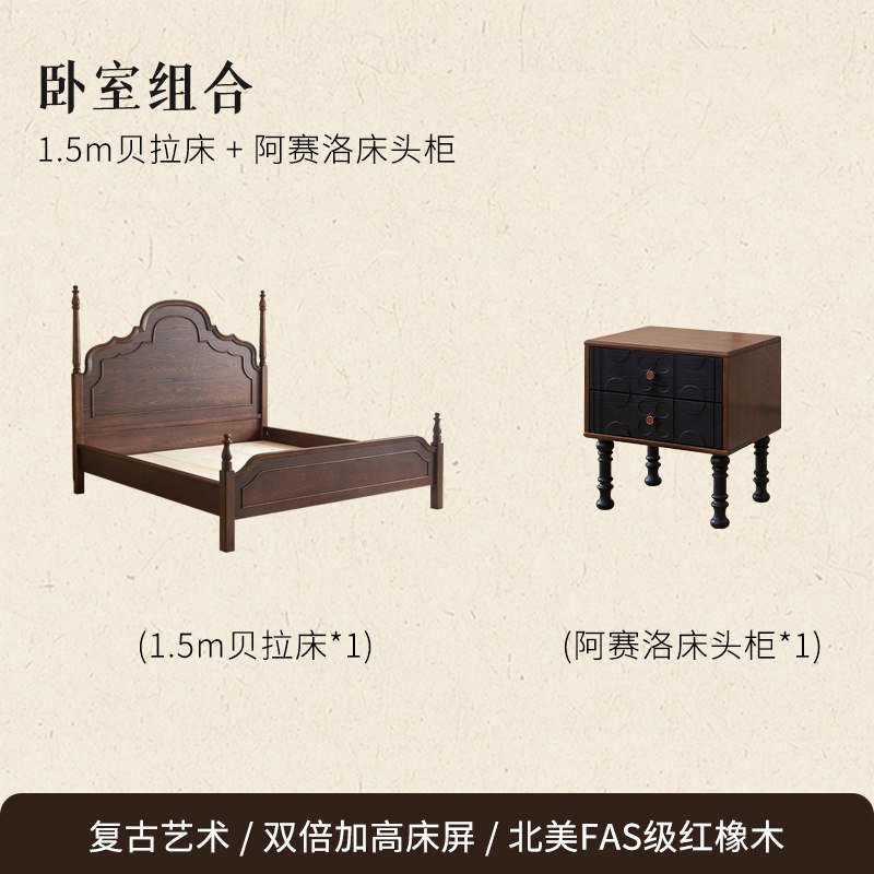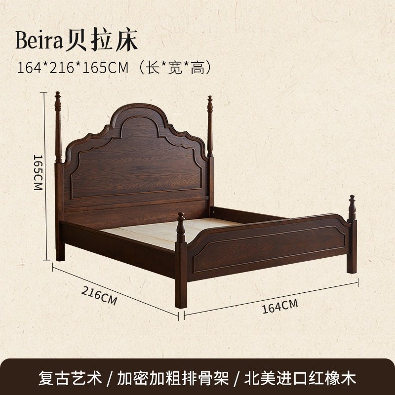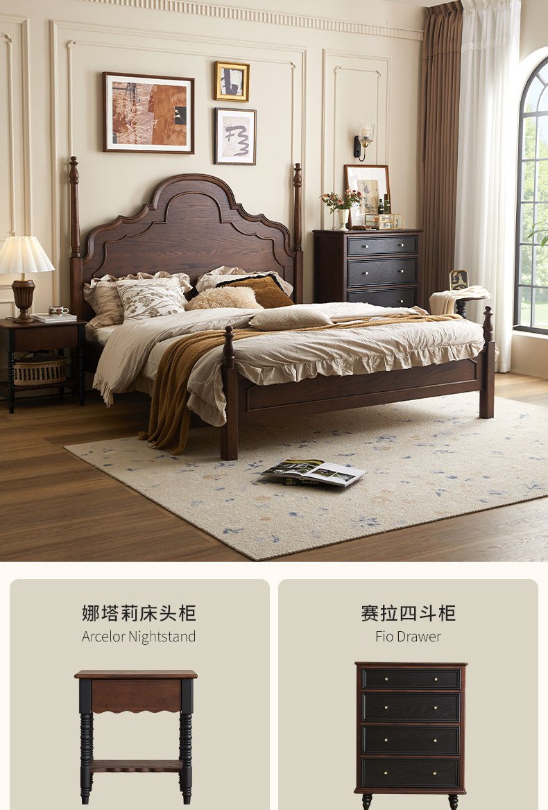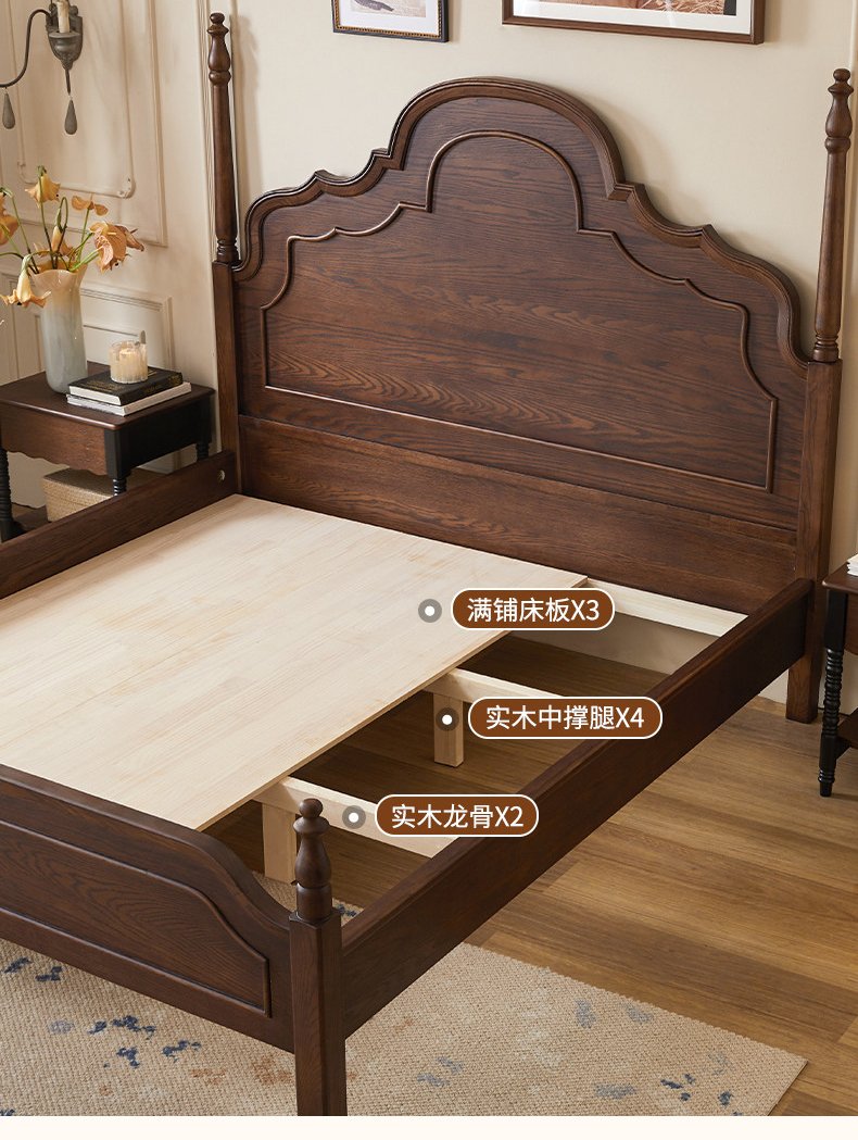 + Free ShippingFrench Retro Solid Wood Bed, 1.8m Double Bed for Master Bedroom, Mid-Century Vintage Princess Bed, New American Style Minimalist Furniture