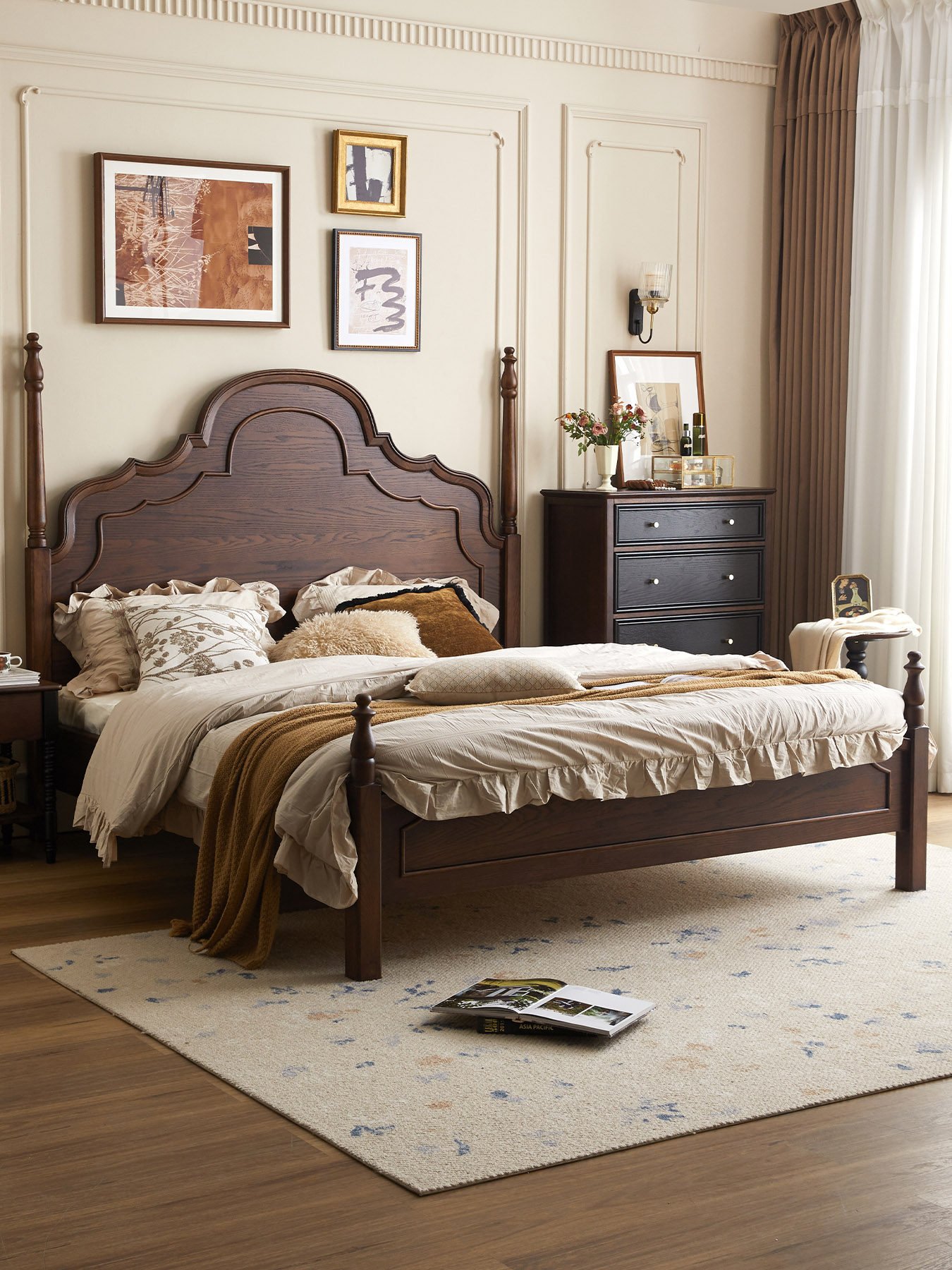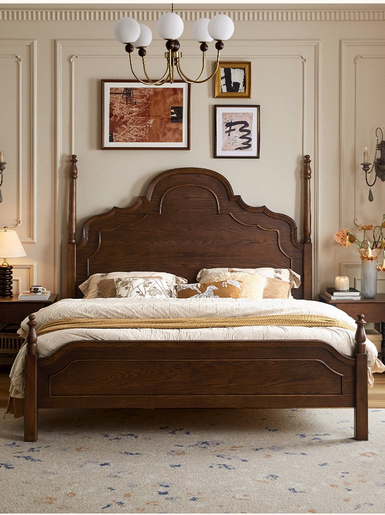 French Retro Solid Wood Bed