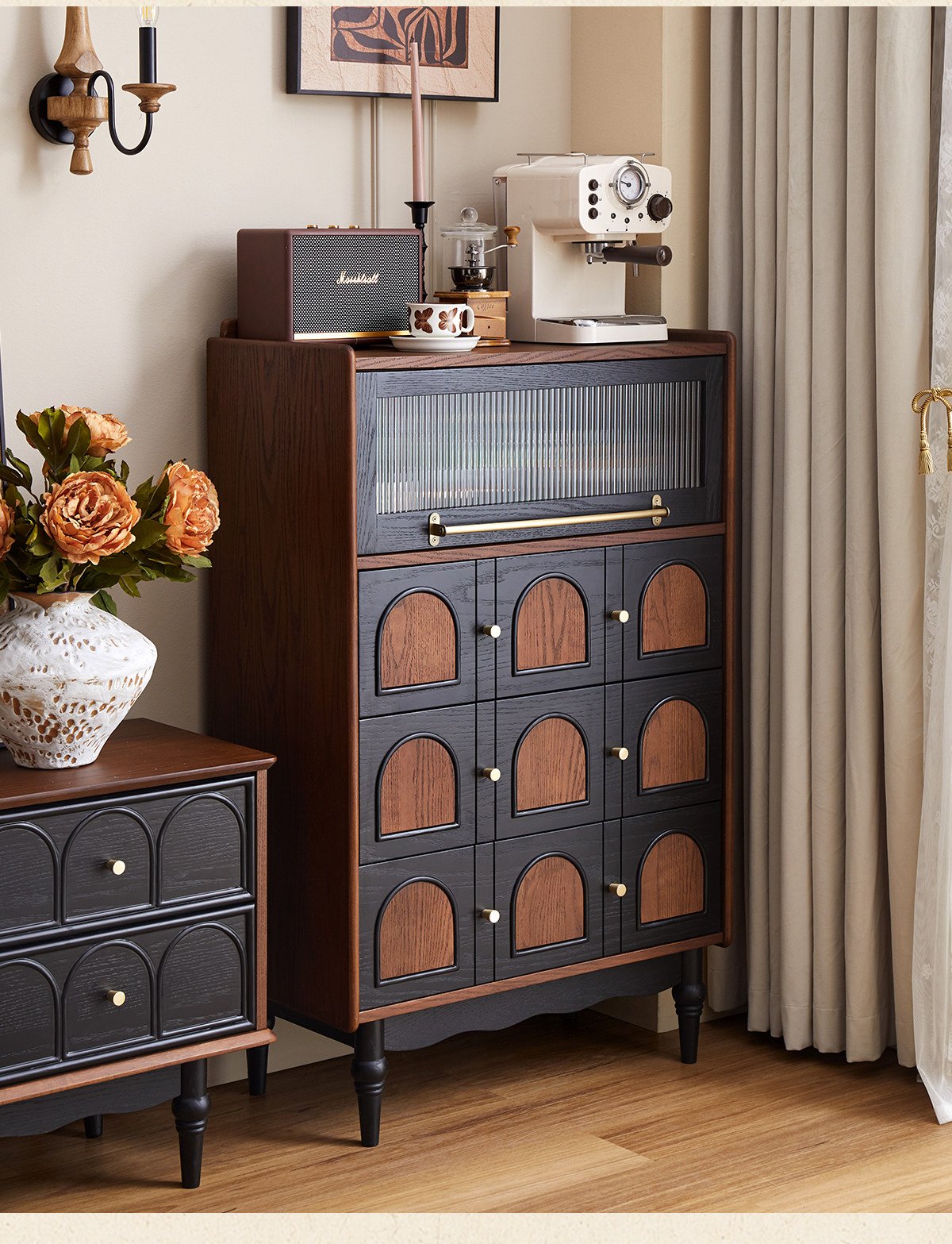 + Free ShippingFrench Retro Solid Wood Chest of Drawers, Narrow Side Cabinet for TV Stand in Living Room, End-of-Bed Storage Cabinet for Bedroom