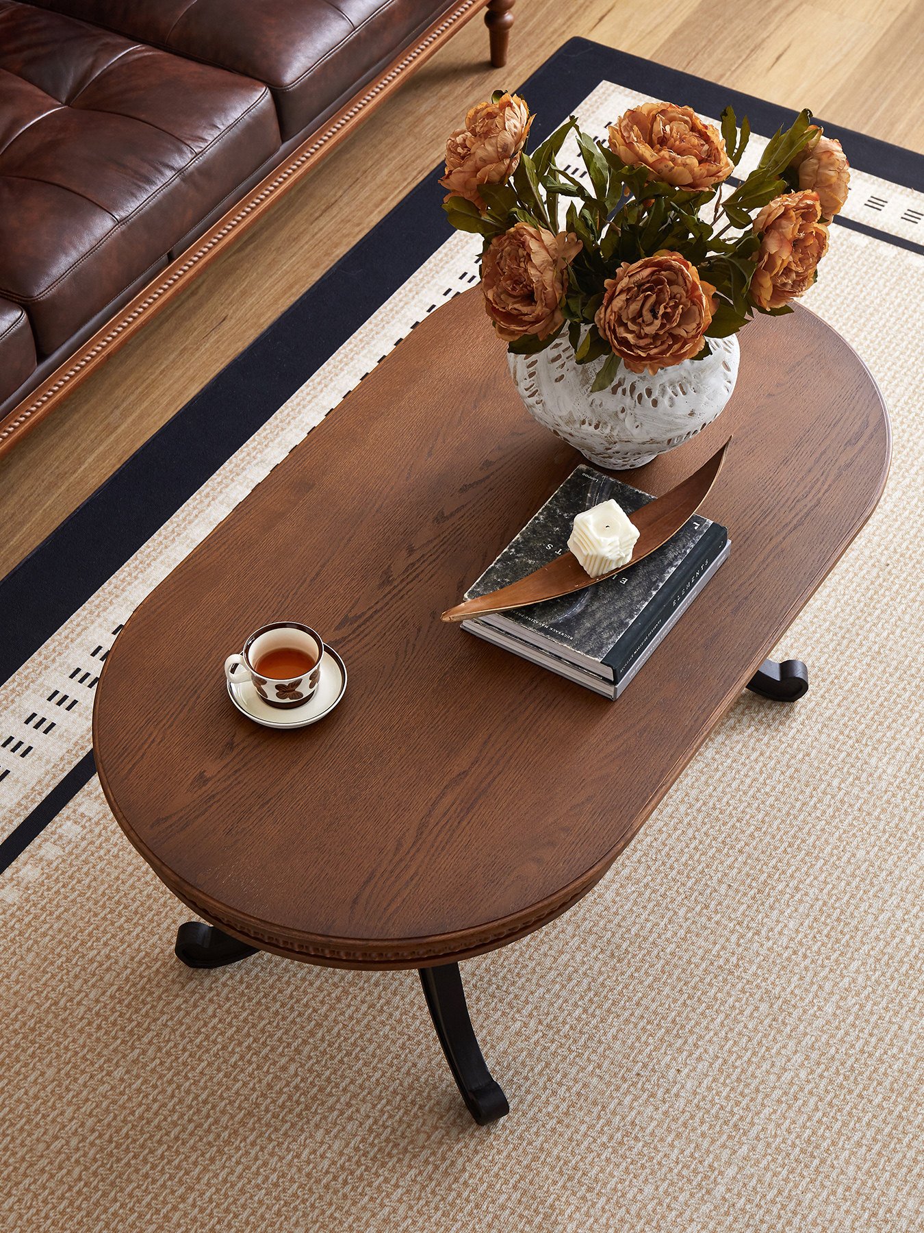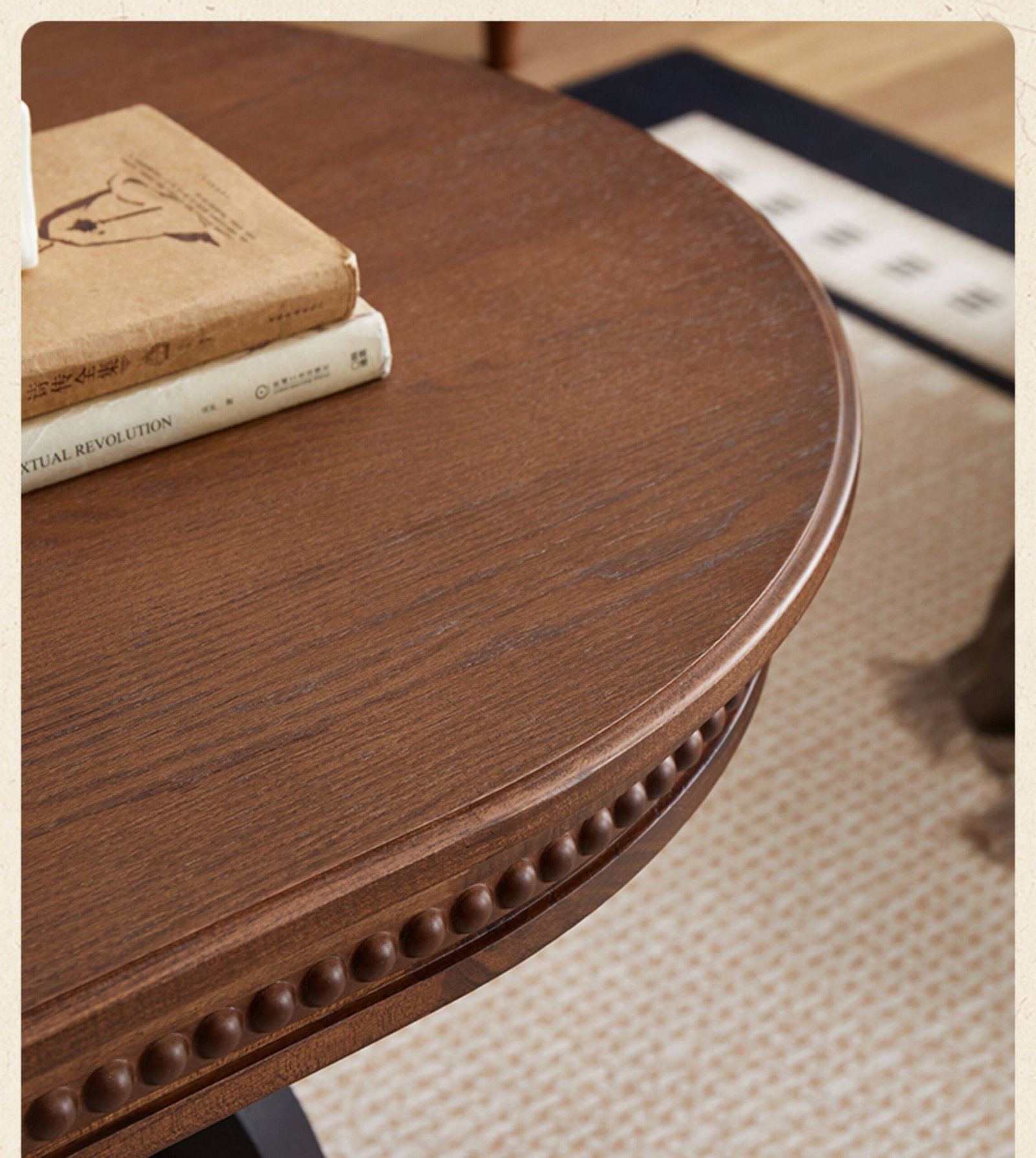 + Free ShippingFrench retro solid wood coffee table set, movable coffee table for living room and small apartment use, oval mid‑century style tea table