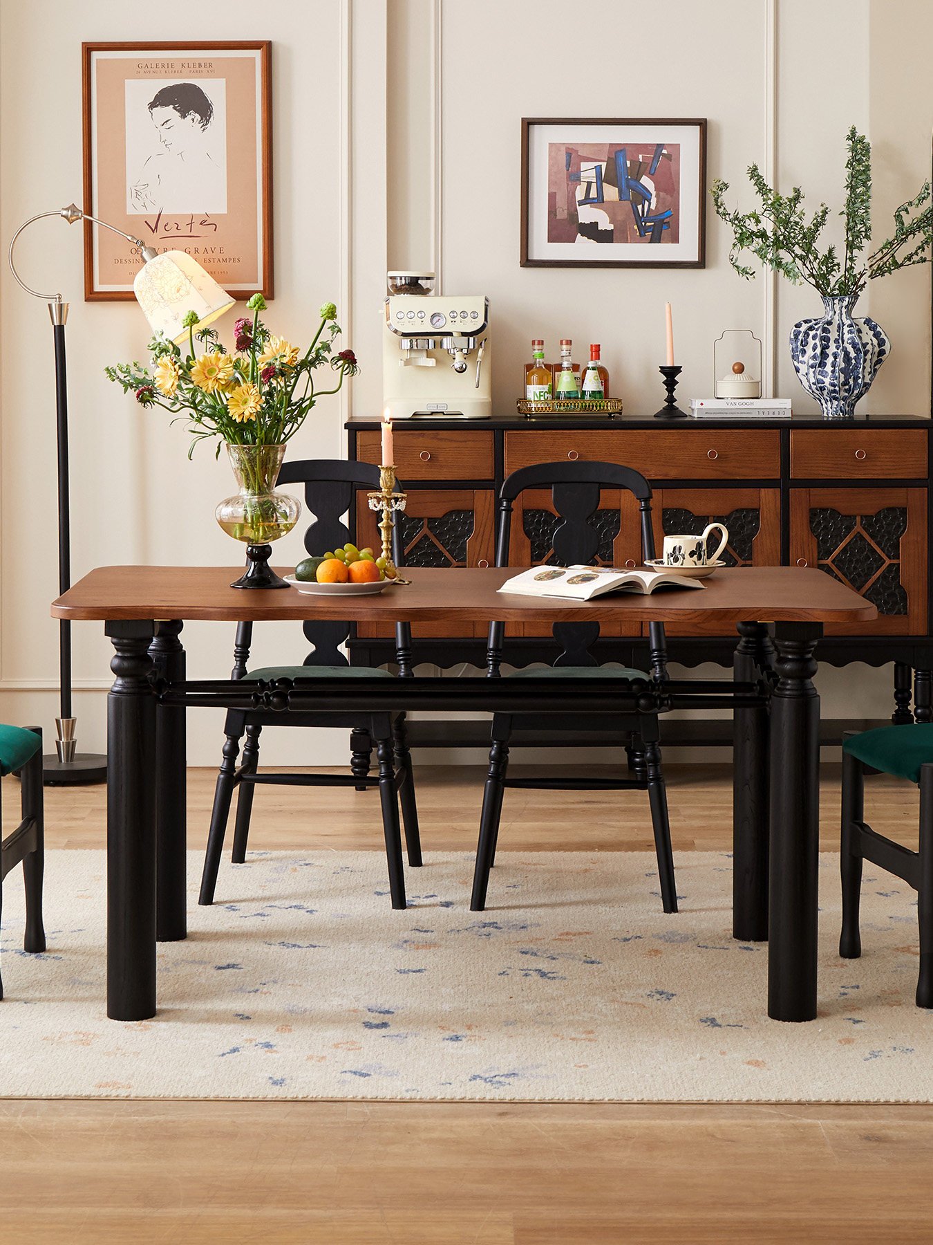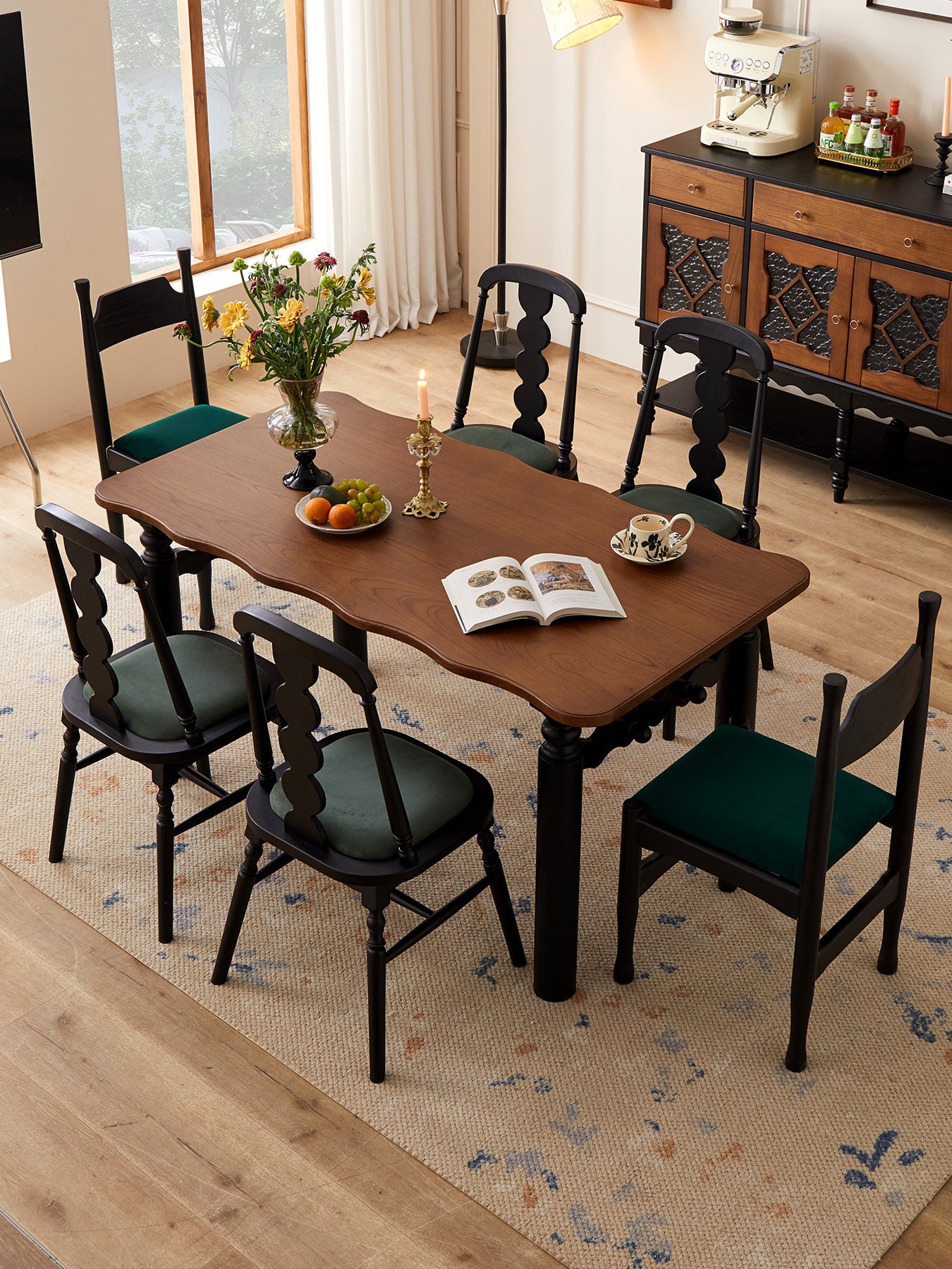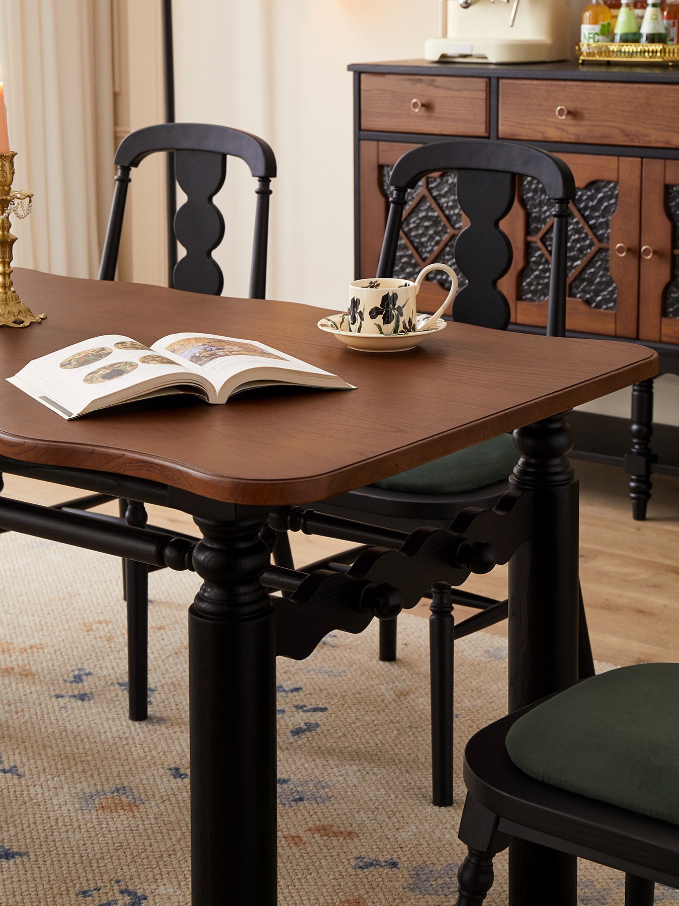 + Free ShippingFrench retro solid wood dining table, rectangular mid-century modern square dining table, home table and chair set, square table