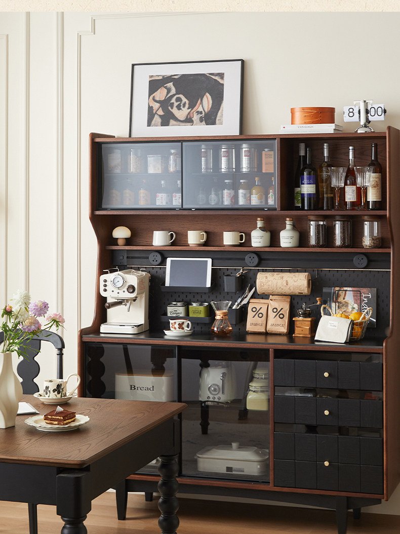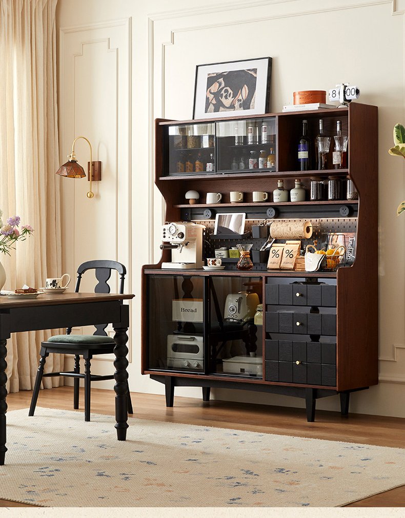 + Free ShippingFrench Retro Solid Wood Sideboard – Wall‑Mounted Integrated Storage Cabinet, Living Room Wall‑Fitted Mid‑Century High Storage Cabinet