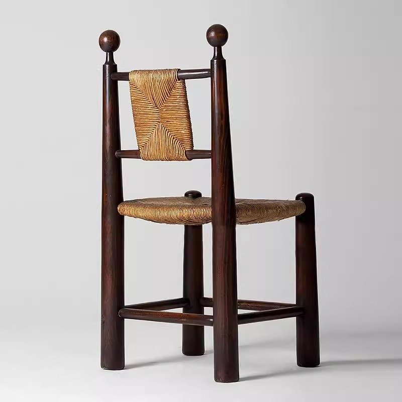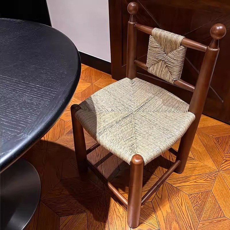 + Free ShippingFrench retro style solid wood dining chairs, small family restaurants, rope woven chairs, antique style homestays, hotels, backrests