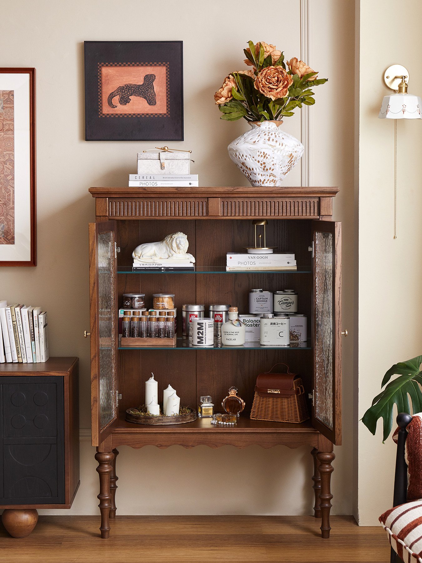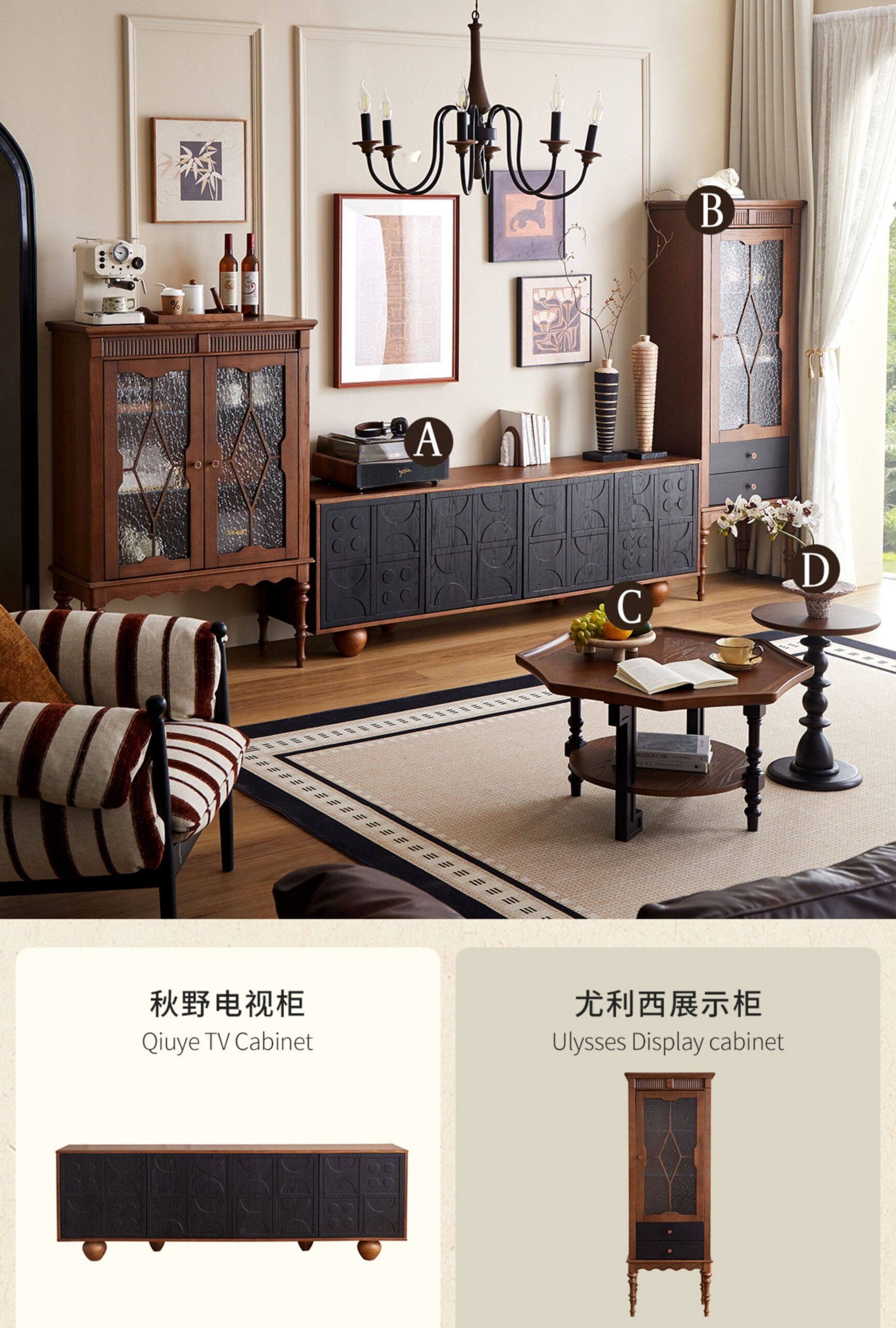 French-style solid wood sideboard, living room storage cabinet