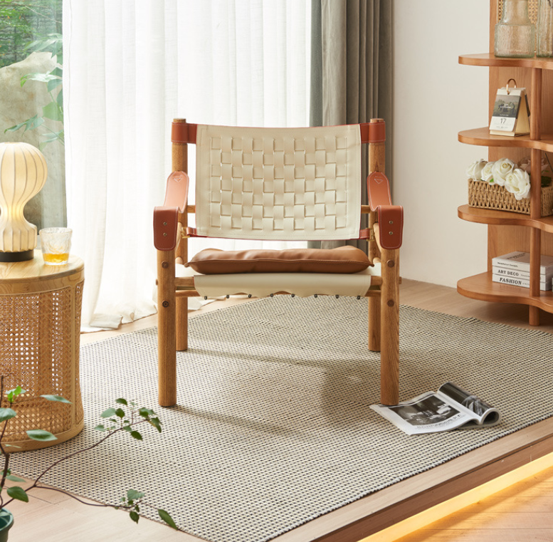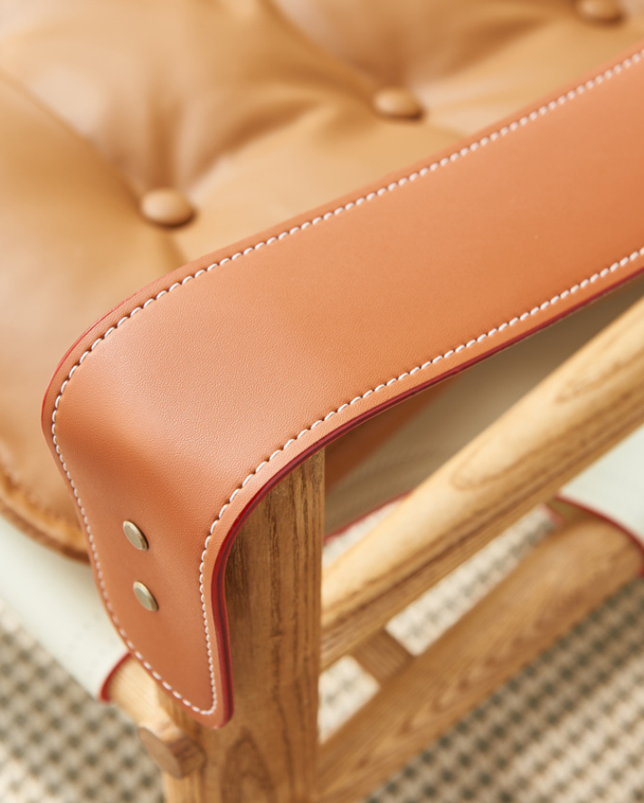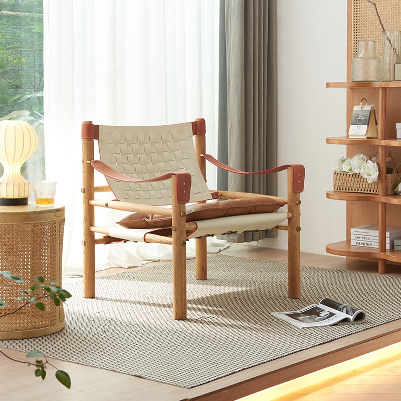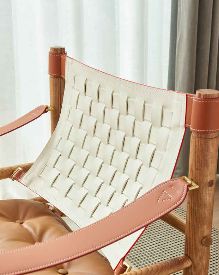 + Free ShippingItalian minimalist saddle leather sofa chair for office and home use, light luxury wabi sabi style hotel homestay, solid wood leisure lounge chair