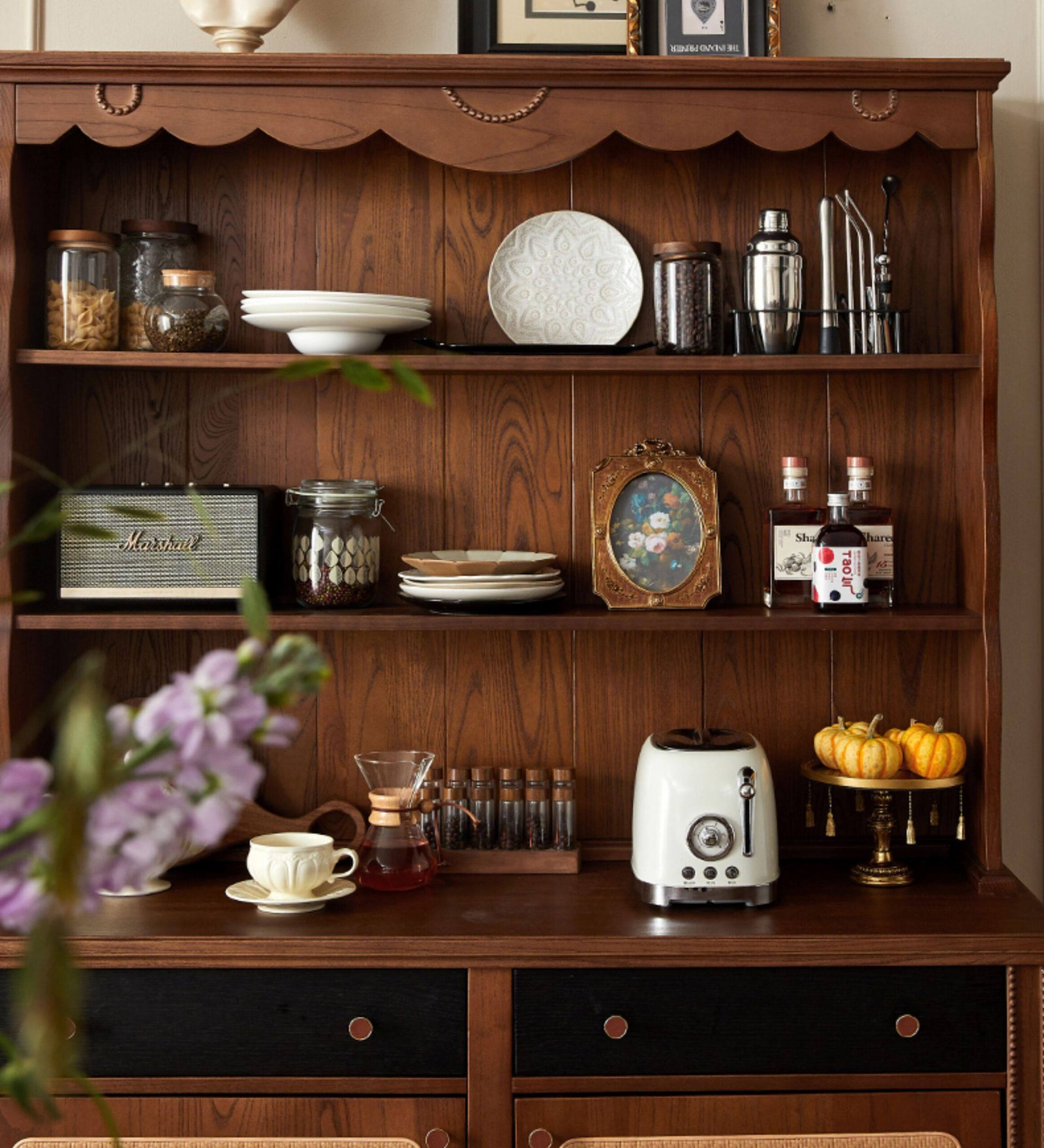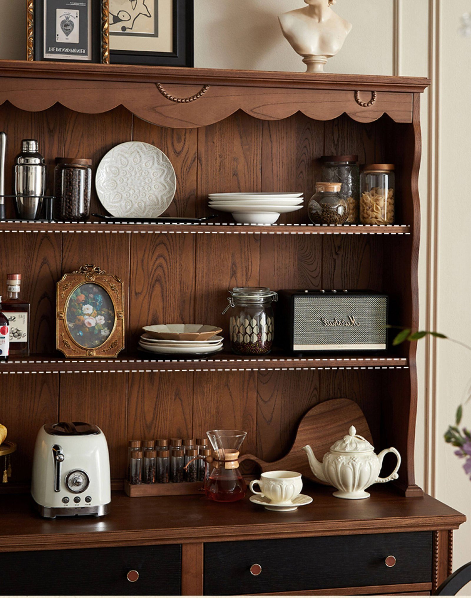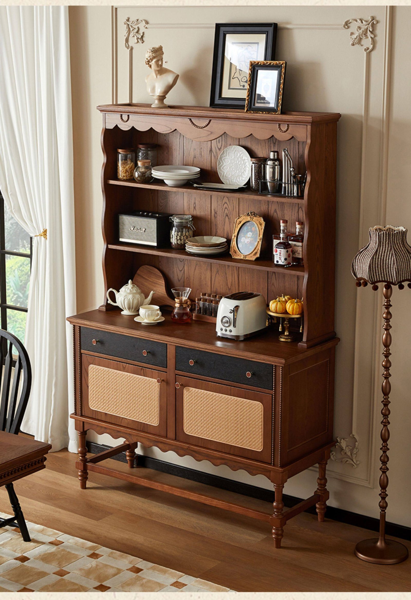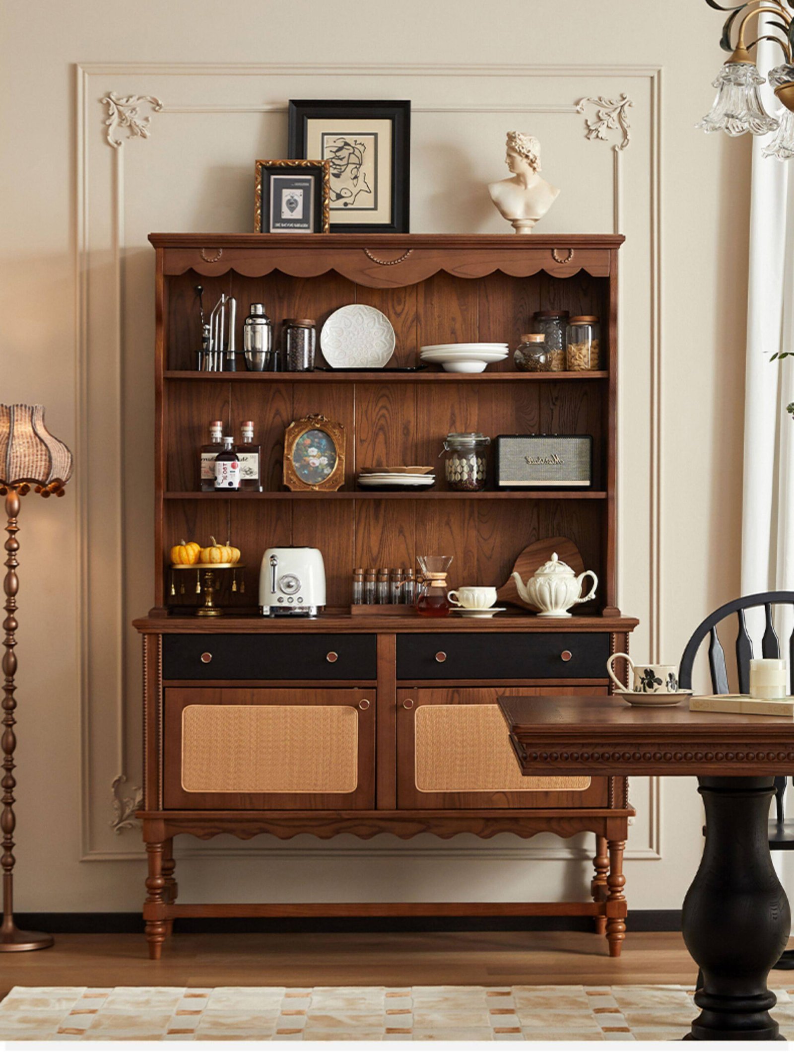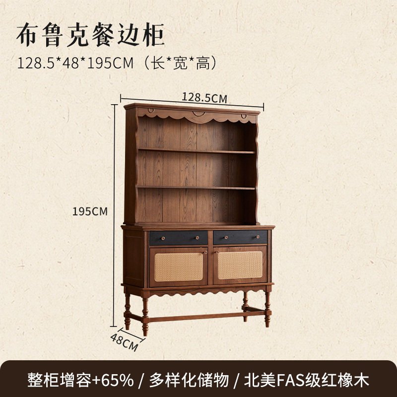 + Free ShippingMid‑century style solid wood sideboard, wall‑mounted integrated storage cabinet, French retro small cabinet, display cabinet, living room storage cabinet.