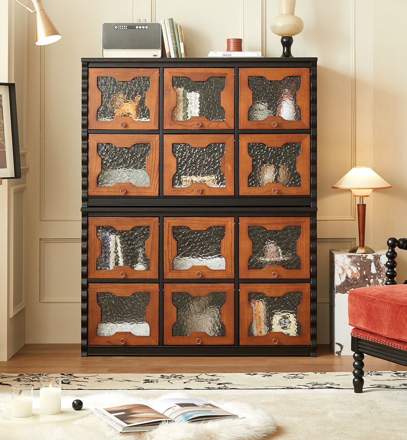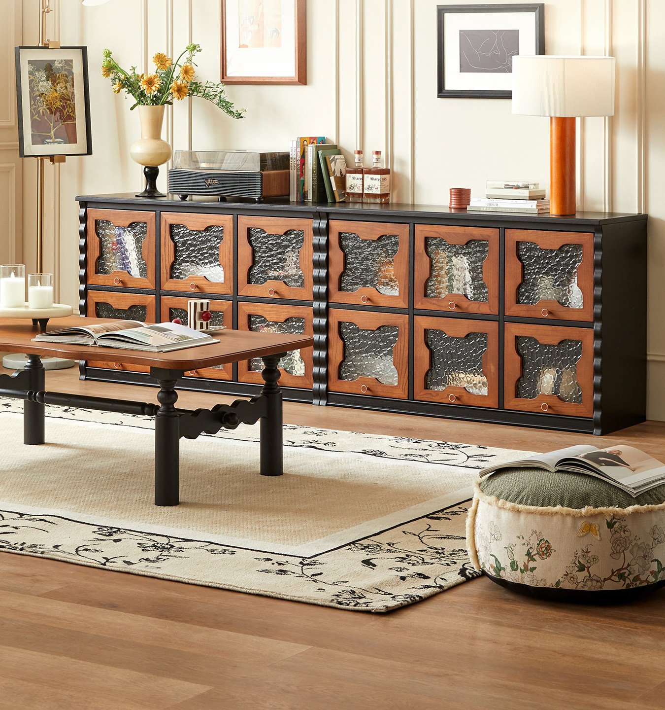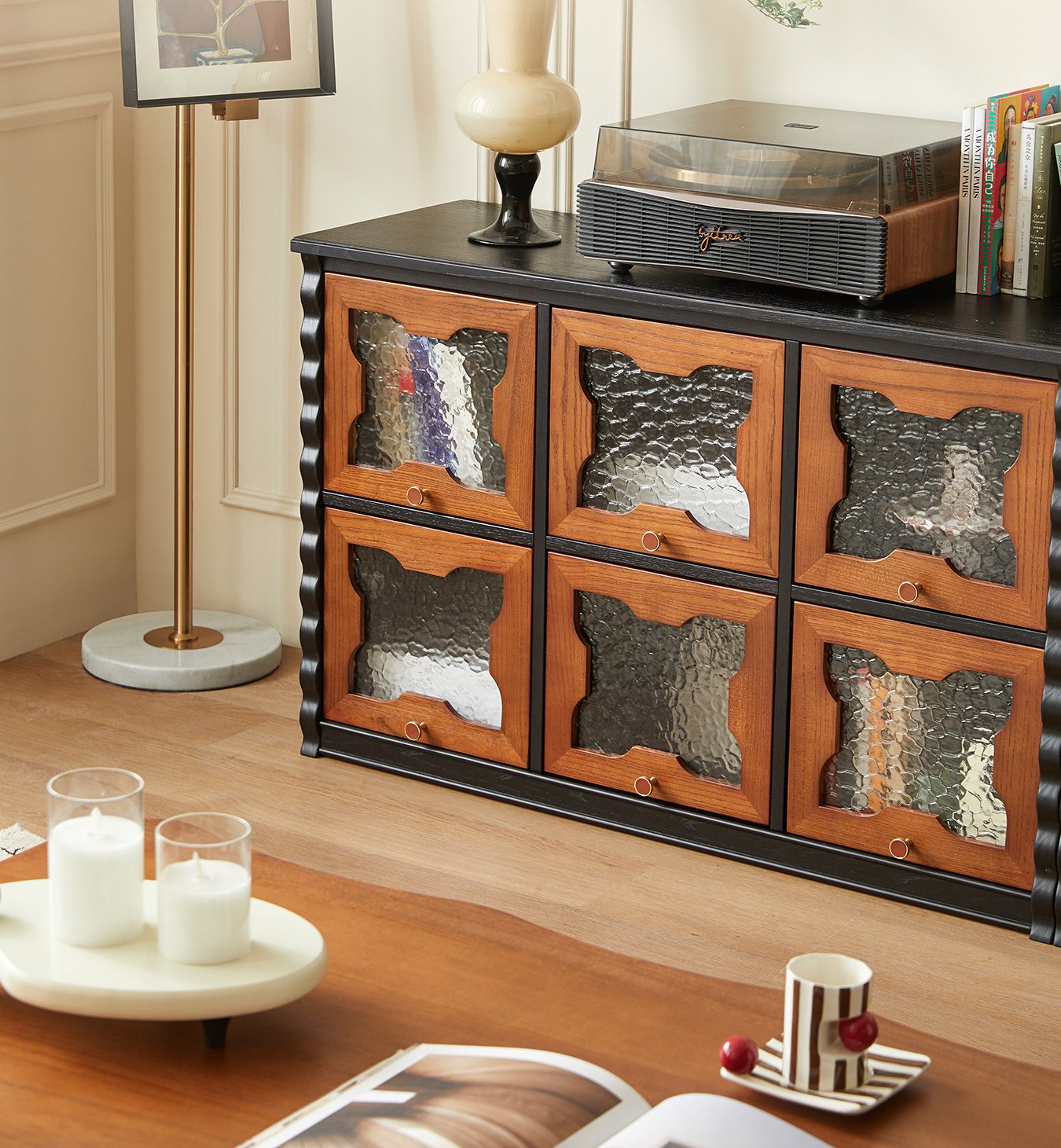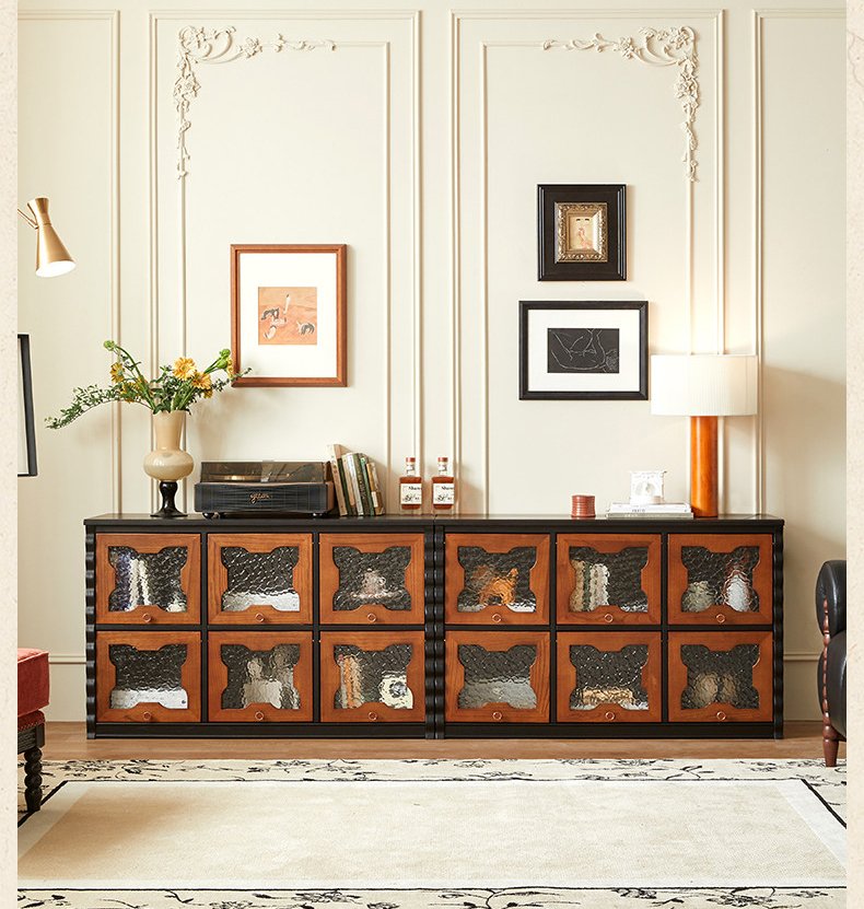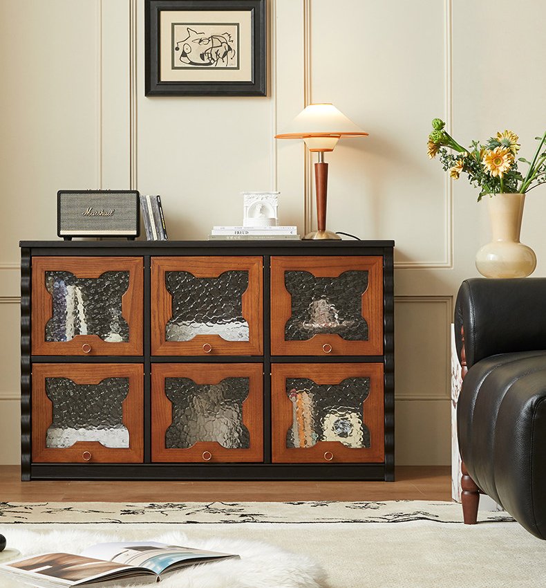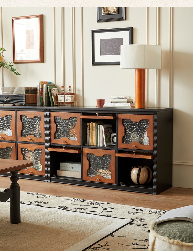 Mid-Century Floor TV Stand Combined with Integrated Storage Cabinet