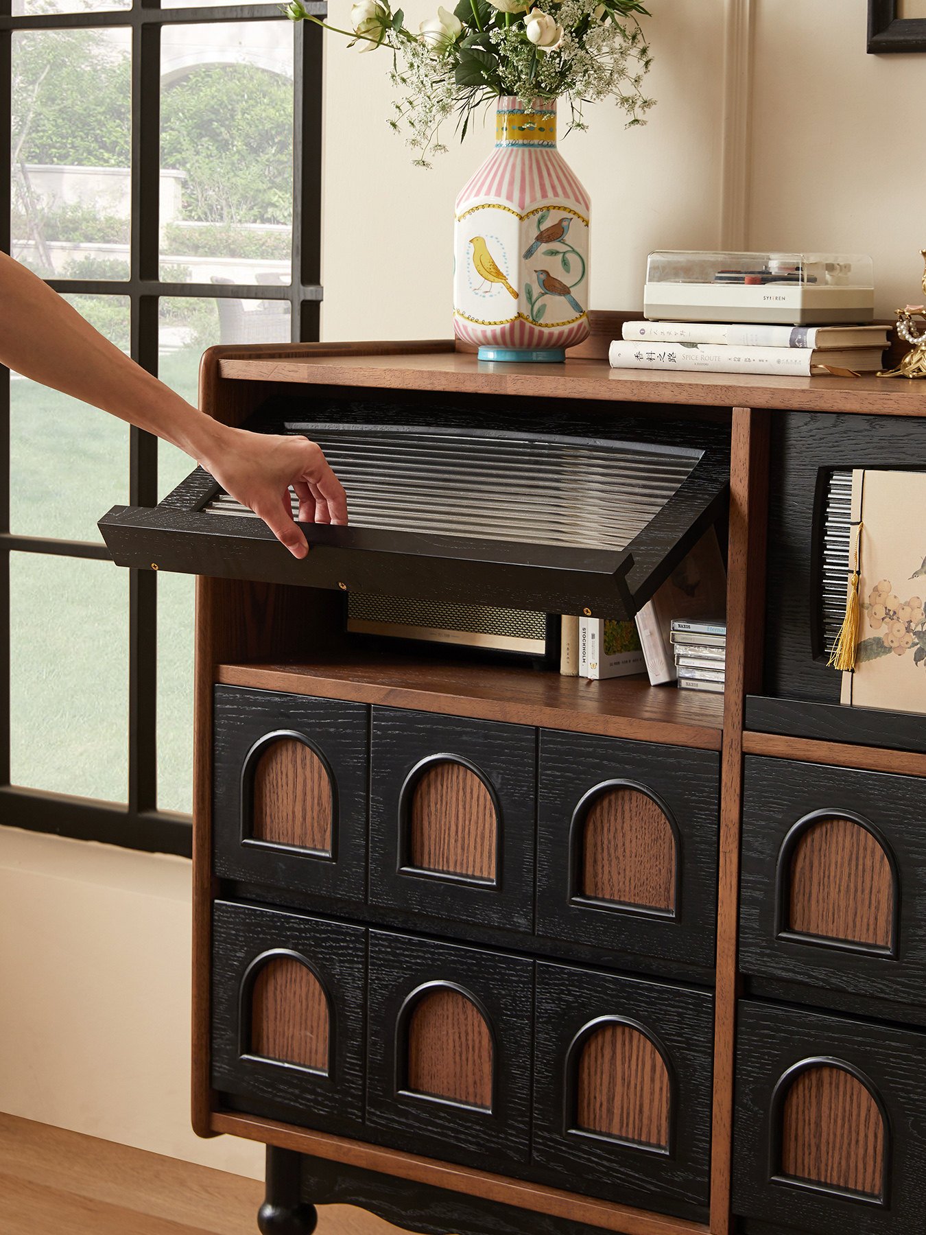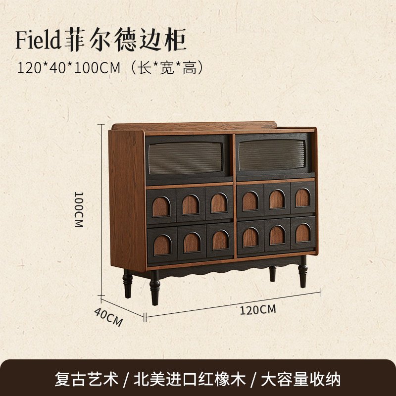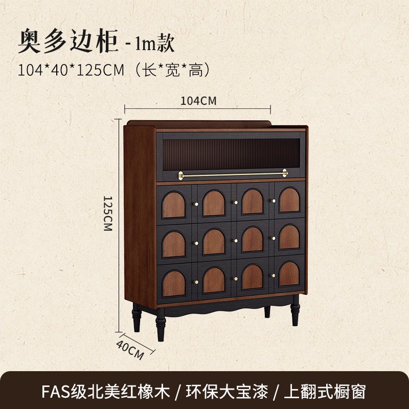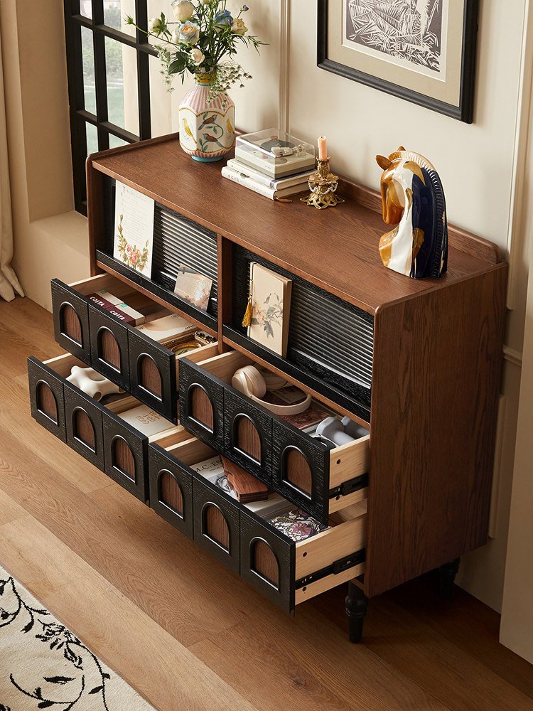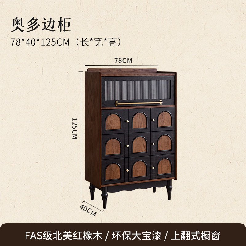 + Free ShippingMid-century solid wood sideboard, French retro living room wall-mounted storage cabinet, mid-century style organizer, bedroom end-of-bed chest of drawers.