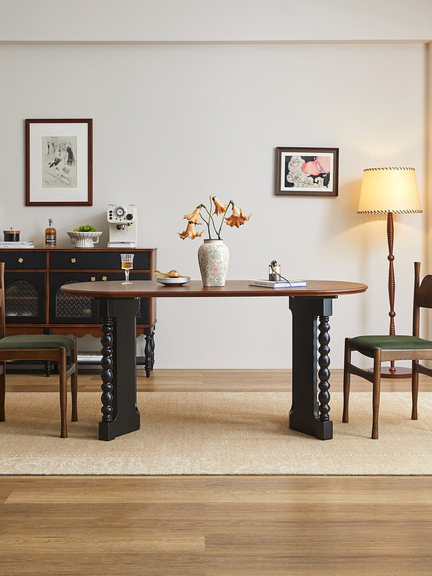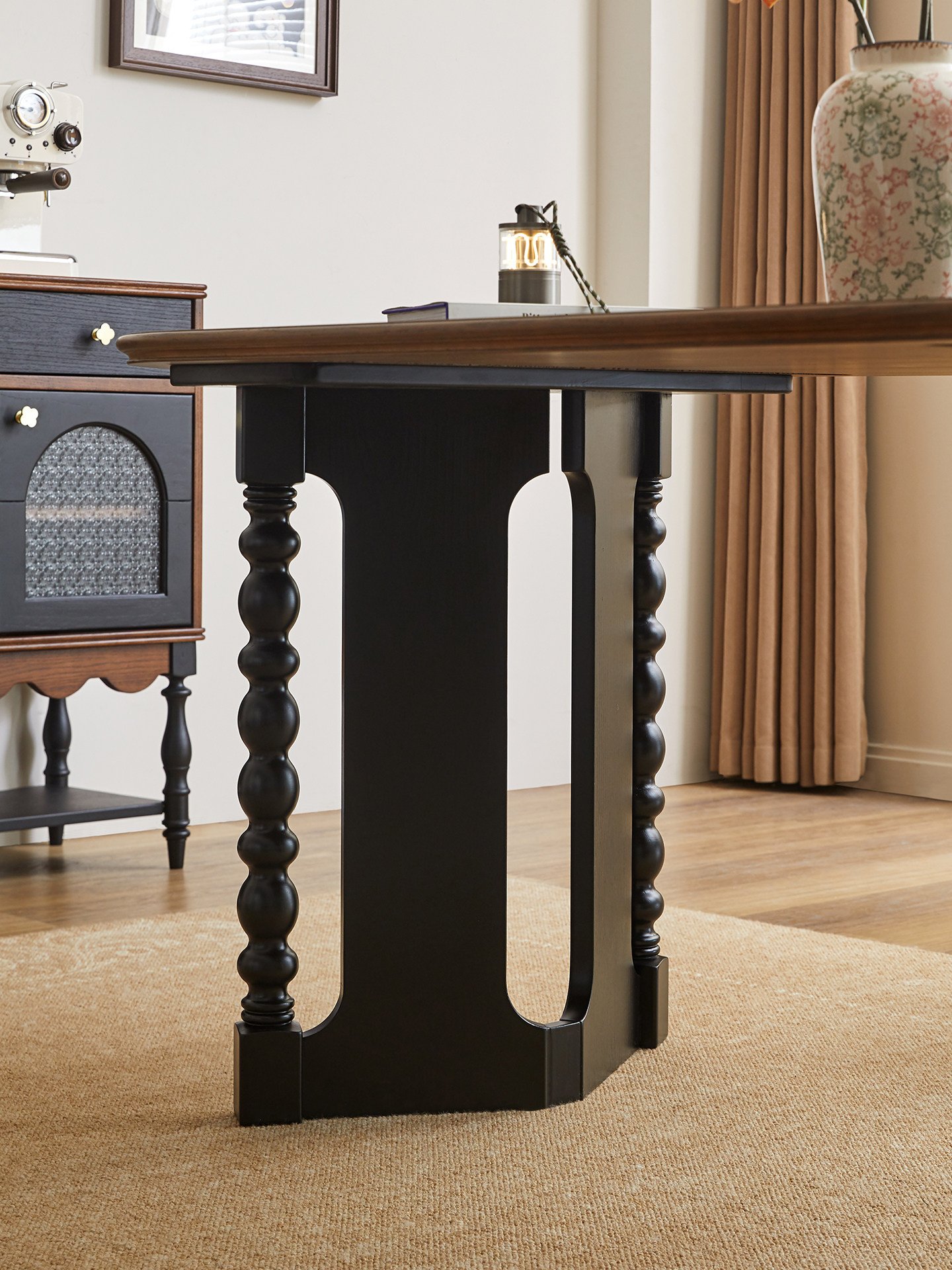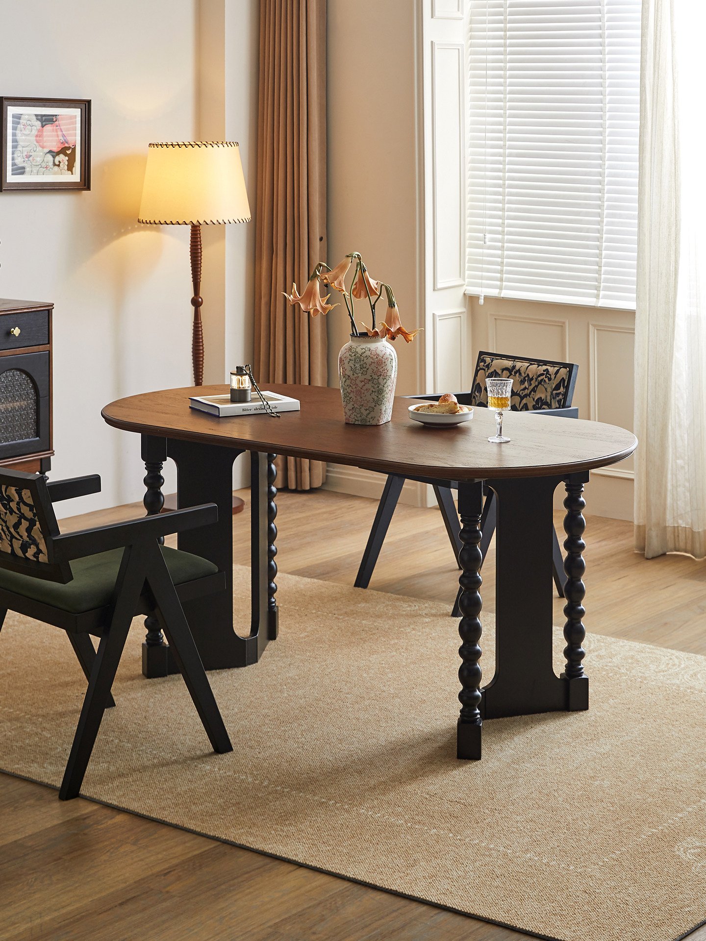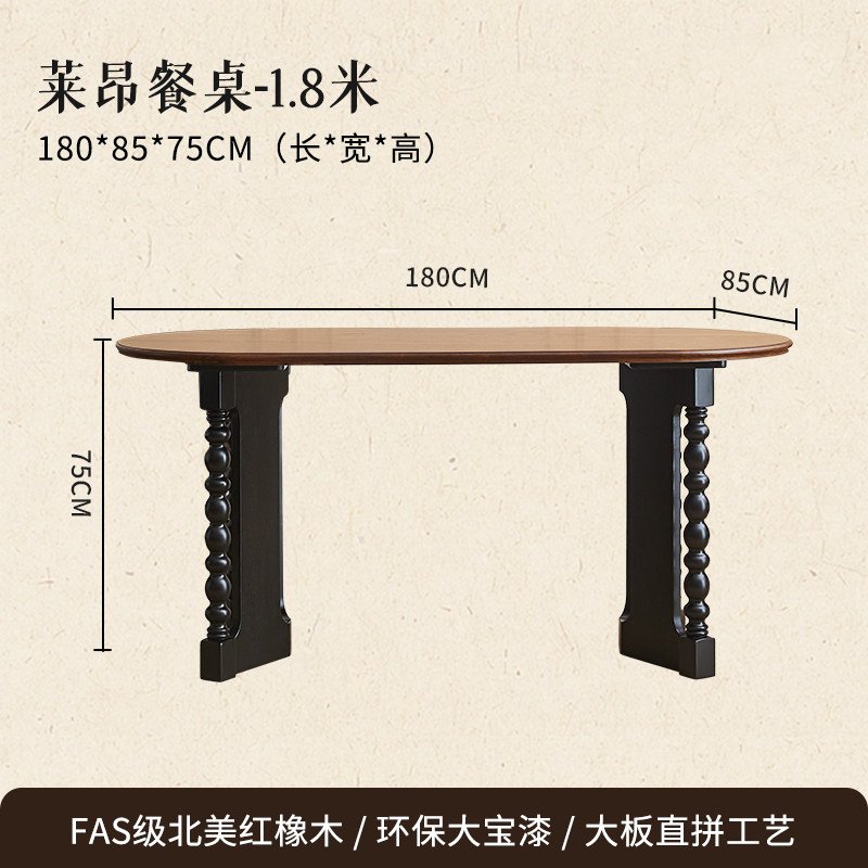 Mid-century style oval dining table, solid wood for home use, French retro rectangular table, 1.8m dining table