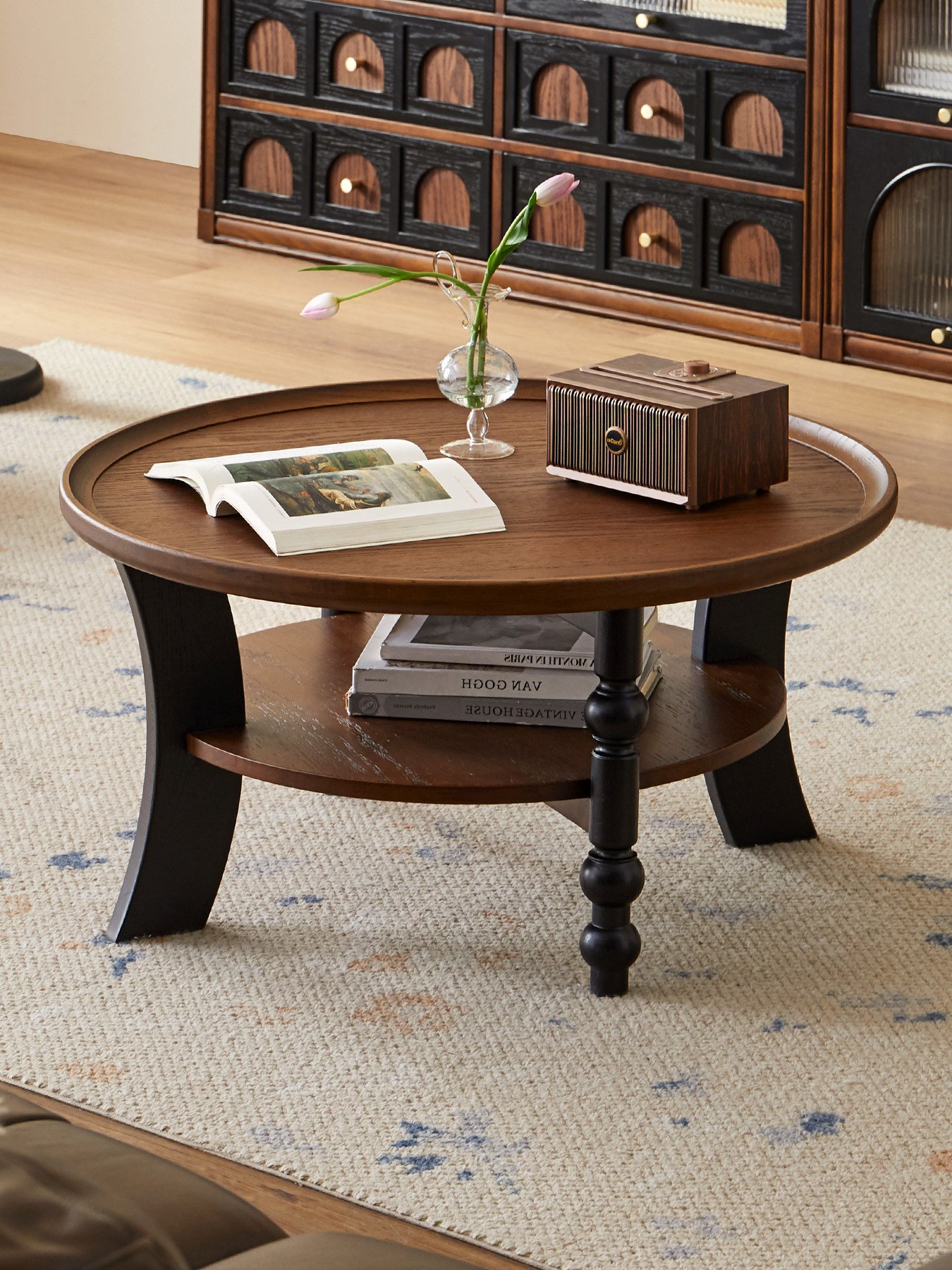 + Free ShippingMid-century style solid wood coffee table, round tea table for small and medium-sized living rooms, low coffee table for home use, balcony small tea table, low table