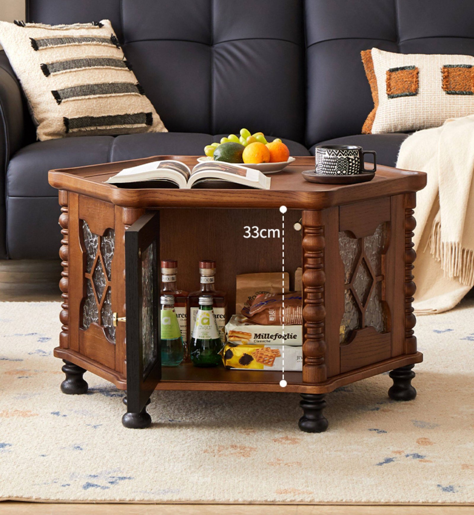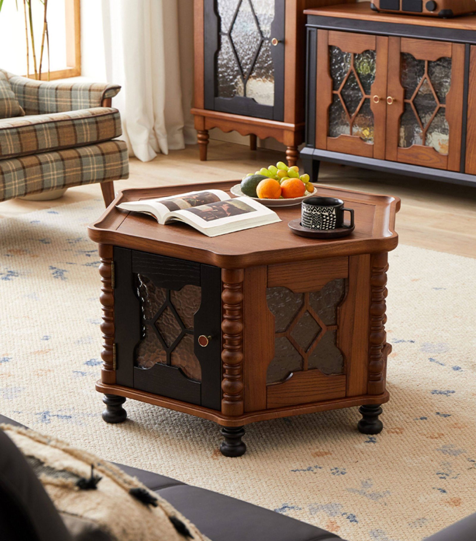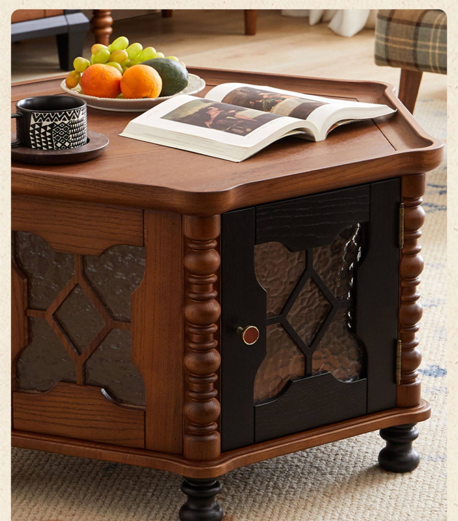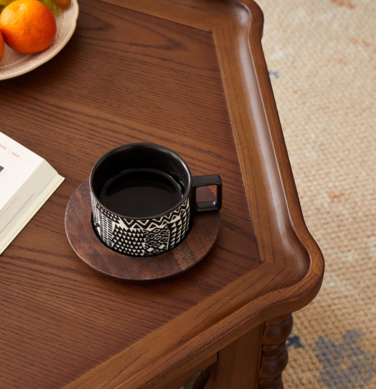 + Free ShippingMid-century style solid wood round coffee table, retro small tea table for living room and home use, small‑apartment tea table, TV stand and coffee table set
