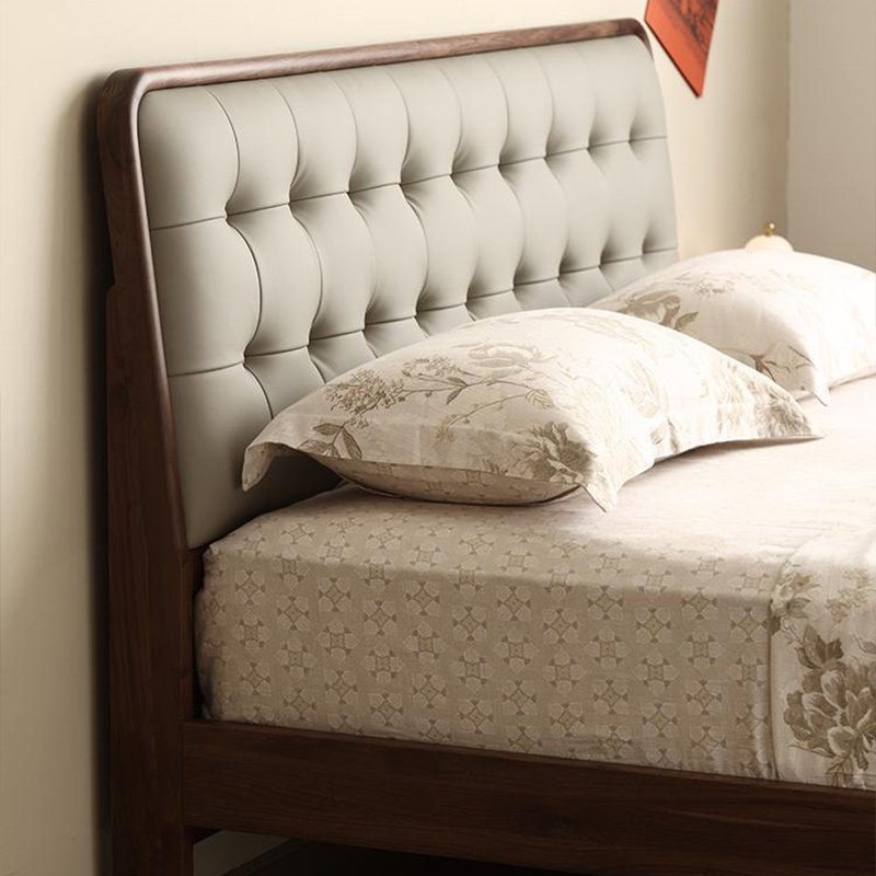 + Free ShippingNew Chinese Style 1.8m Solid Black Walnut Bed – High-End Modern Minimalist Double Bed with Upholstered Headboard for Master Bedrooms & Weddings