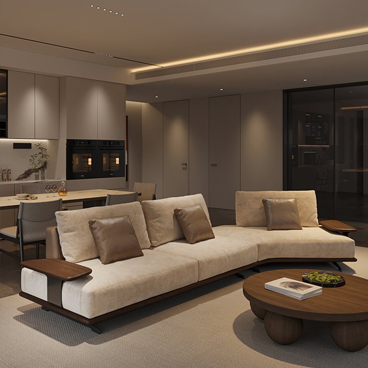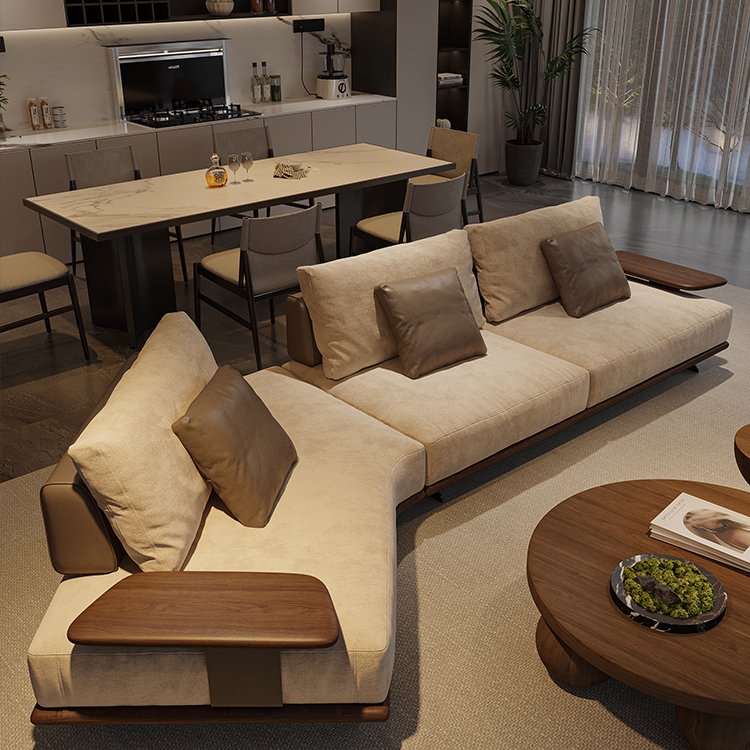 + Free ShippingNew Chinese Style Black Walnut Solid Wood Sofa, Modern Minimalist Light Luxury Premium – Feel Living Room Irregular Sofa Set, Customizable