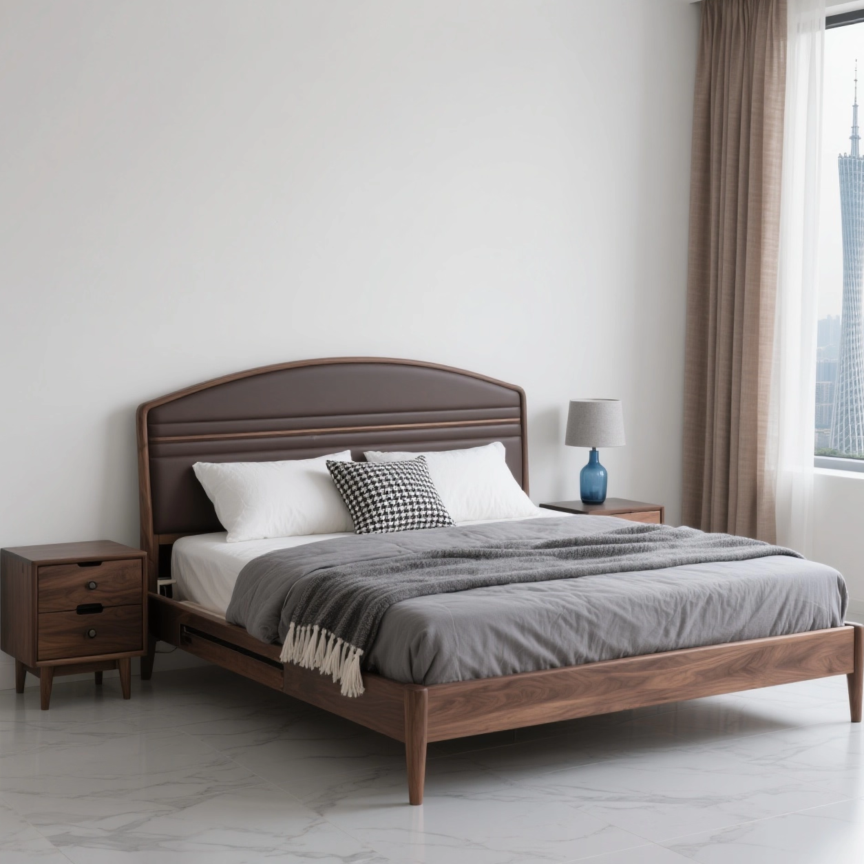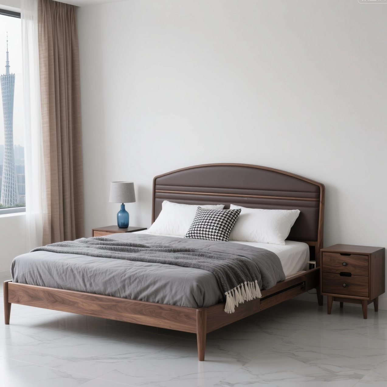 + Free ShippingNew Chinese Style North American Black Walnut Luxury King Bed – High-End Double Bed for Master Bedrooms, Hotels & Homestays, Customizable Furniture