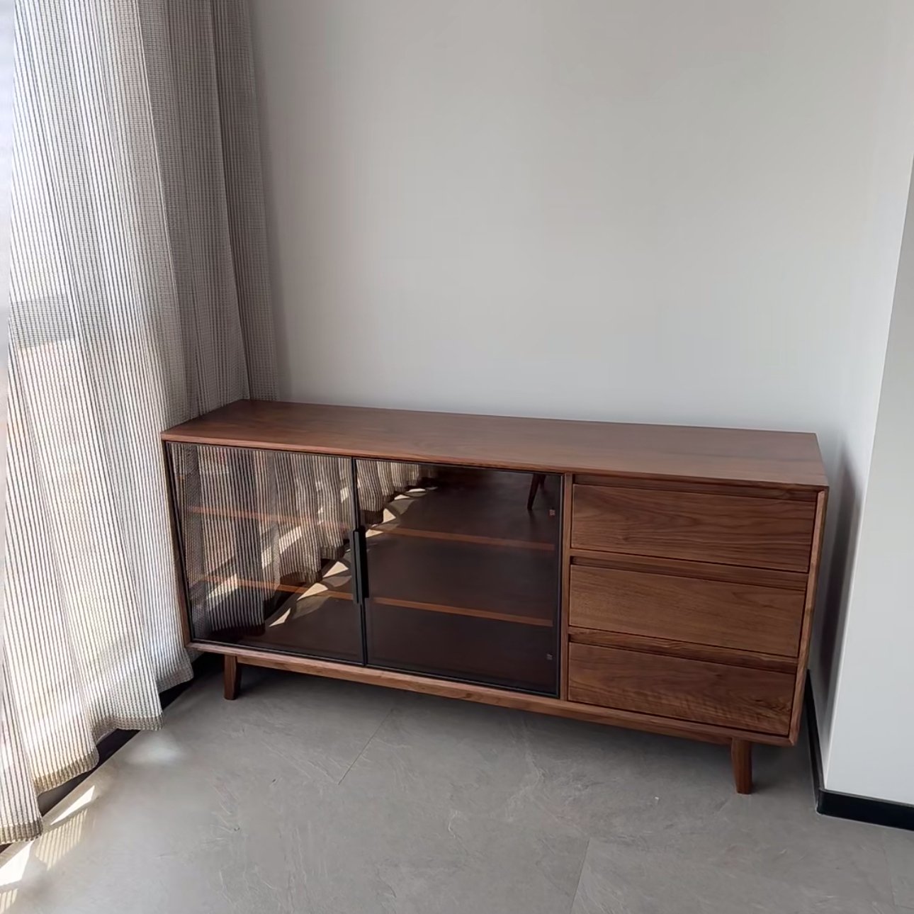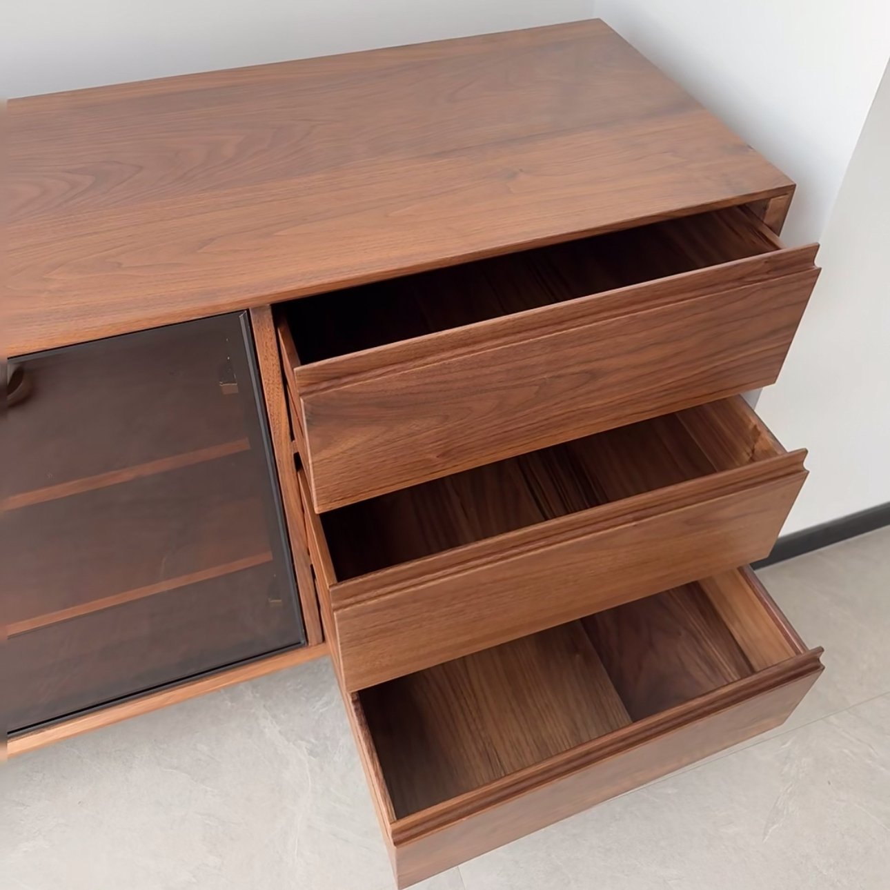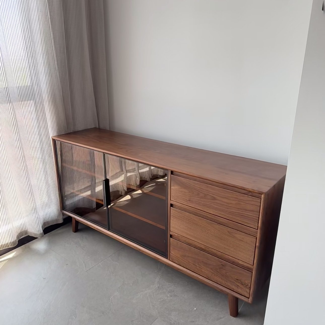 New Chinese Style Solid Black Walnut Sideboard – Modern Minimalist Multifunctional Storage Cabinet for Dining Rooms | Wine Cabinet