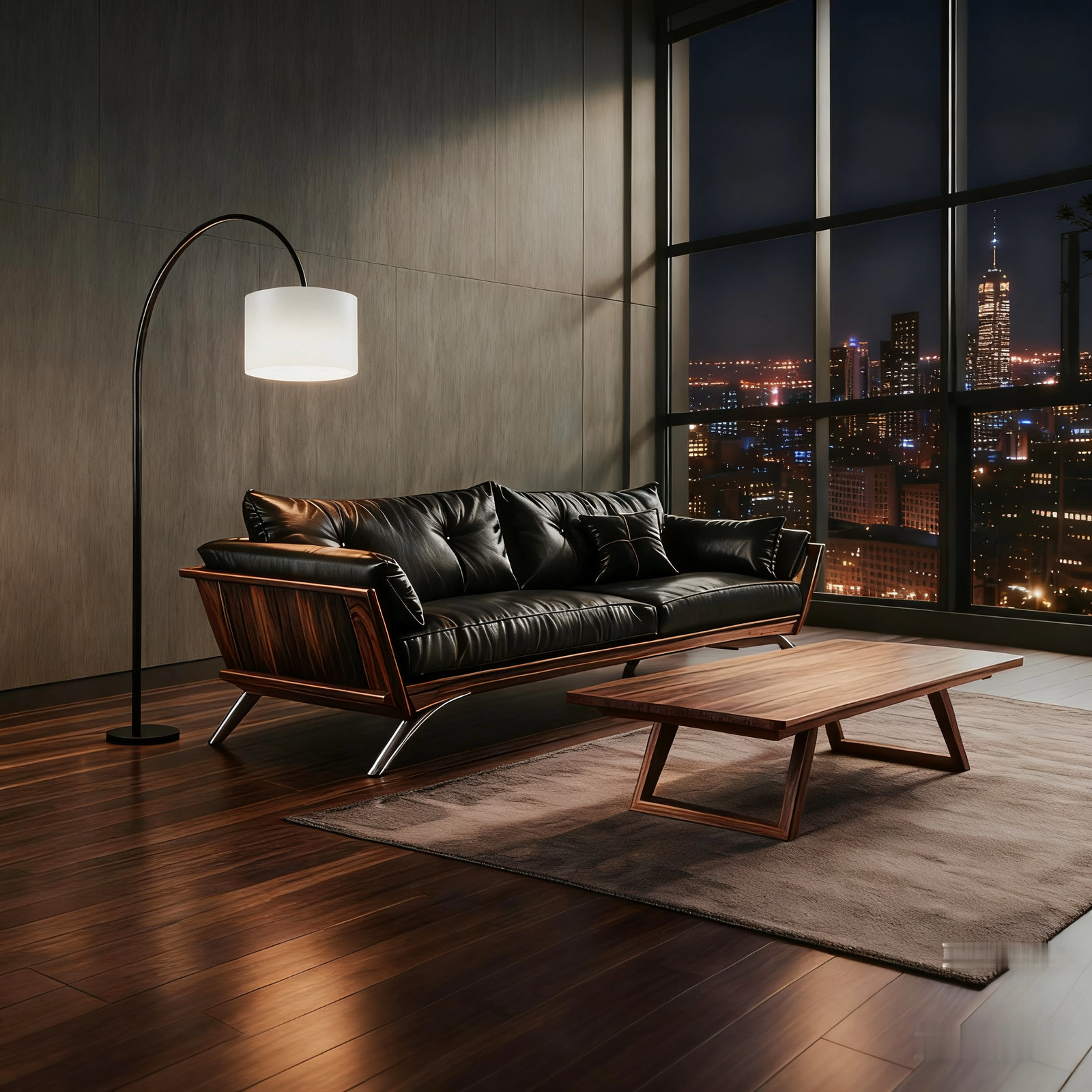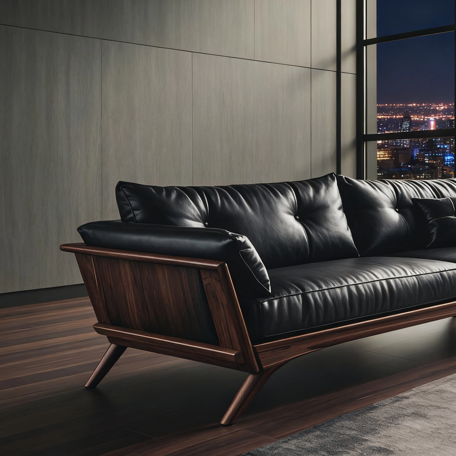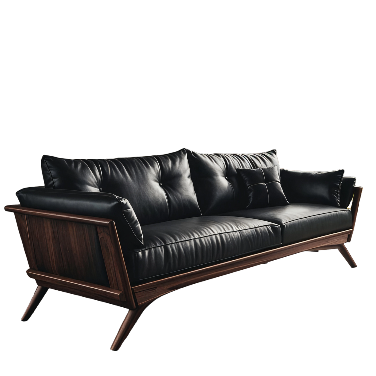 + Free ShippingNew Chinese-style Solid Black Walnut Sofa – Leather Upholstered, Light Luxury with Premium Feel, 3-Seater Straight Row Design for Home Living Rooms & Offices