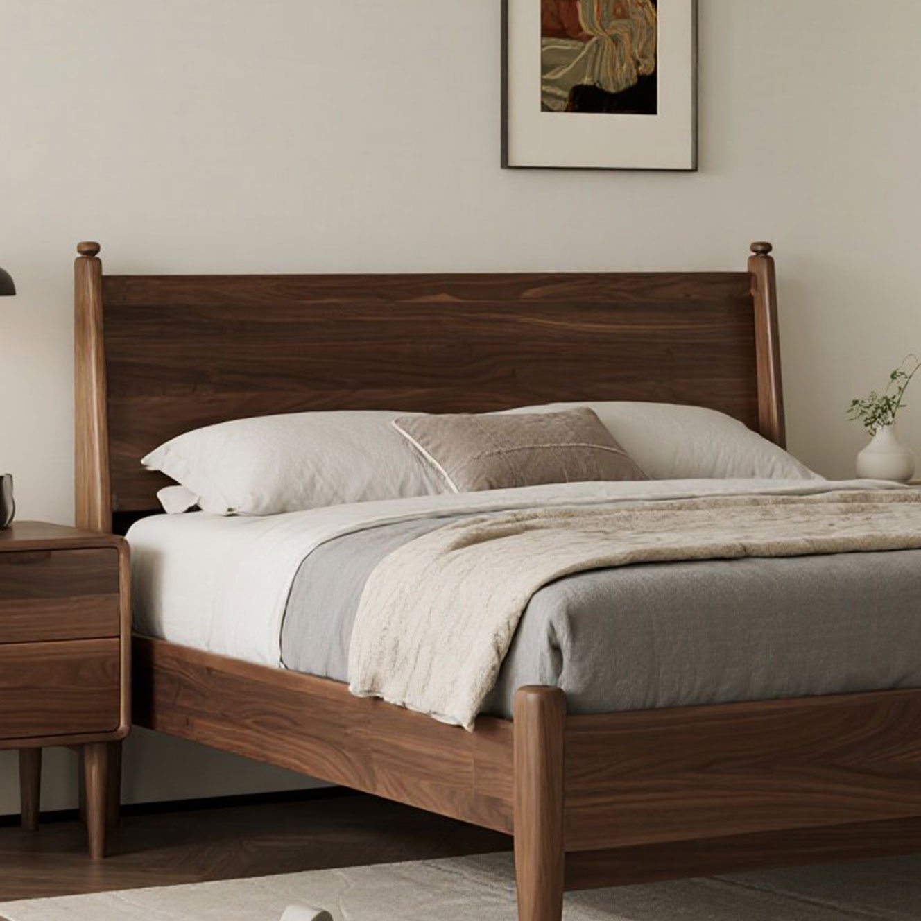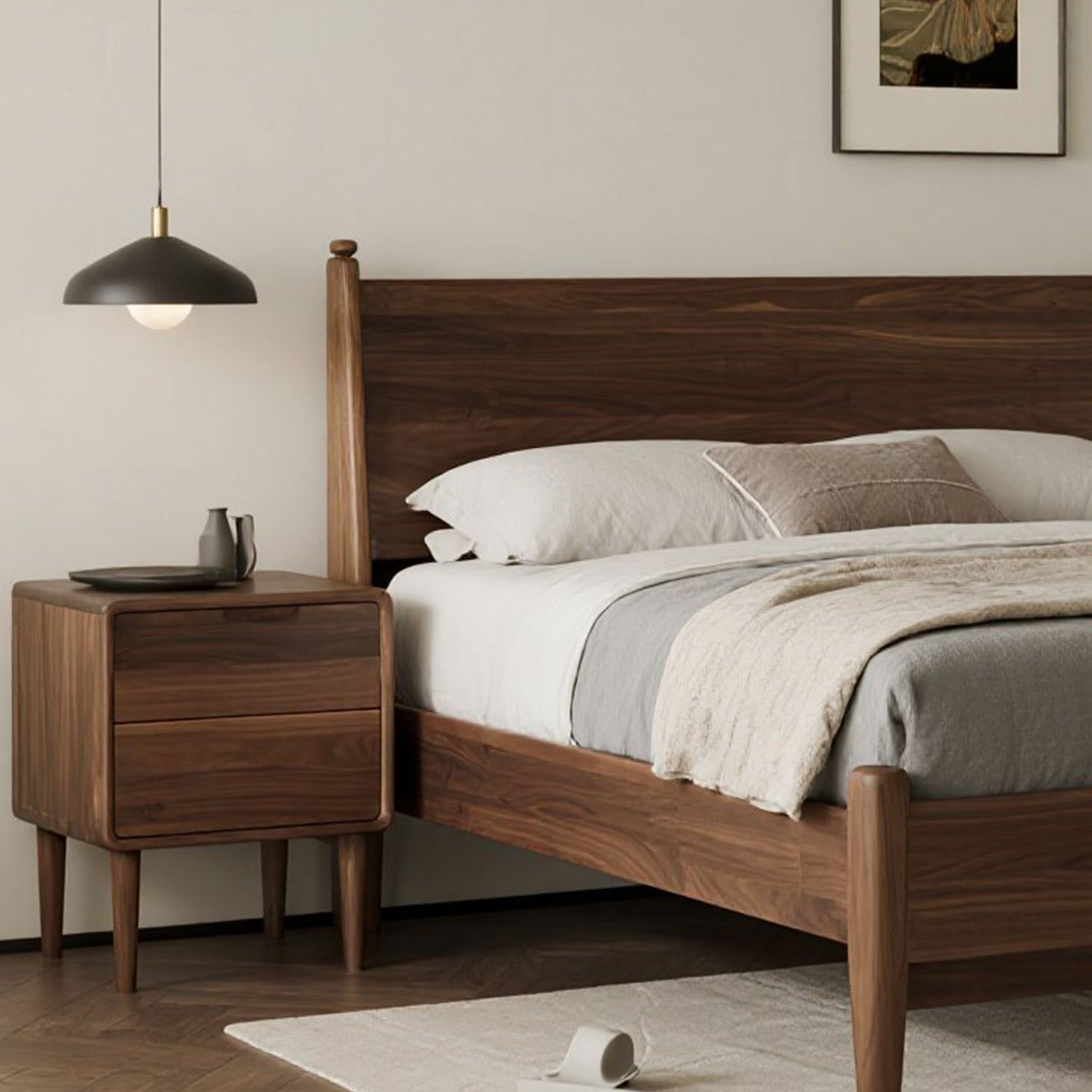 + Free ShippingNew Chinese Style Solid Wood Bed (Black Walnut & Ash Wood) – Modern Minimalist Double Bed for Bedrooms, Weddings, Homestays & Hotels, Customizable