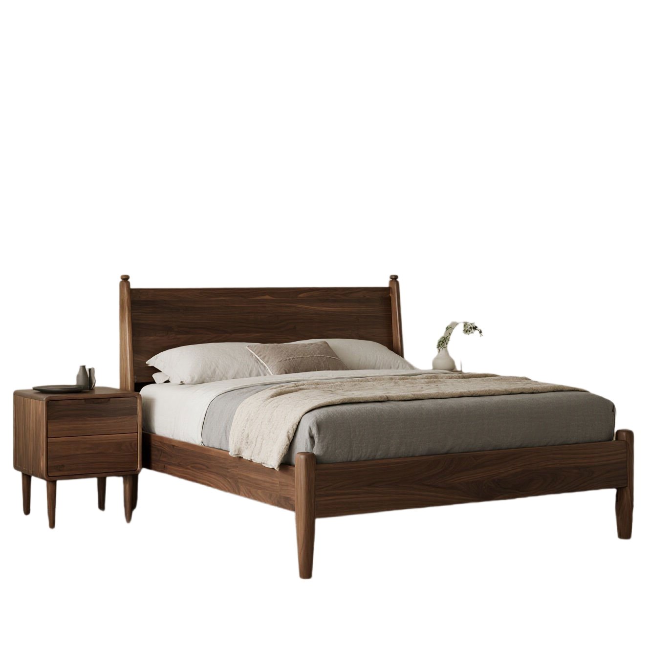 New Chinese Style Solid Wood Bed (Black Walnut & Ash Wood)