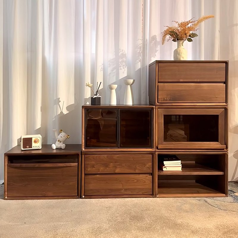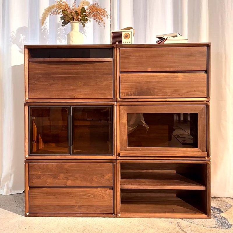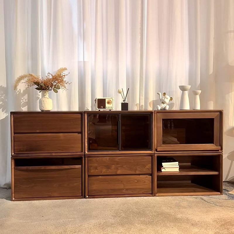 + Free ShippingNew Chinese Style Solid Wood Sideboard – Minimalist Storage Cabinet for Living Rooms & Bedrooms | Freestanding Modular Grid Cabinet & TV Stand