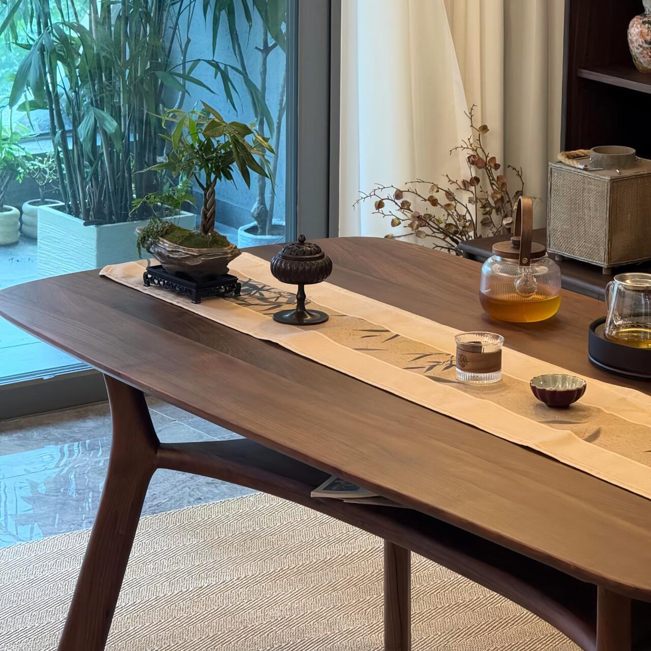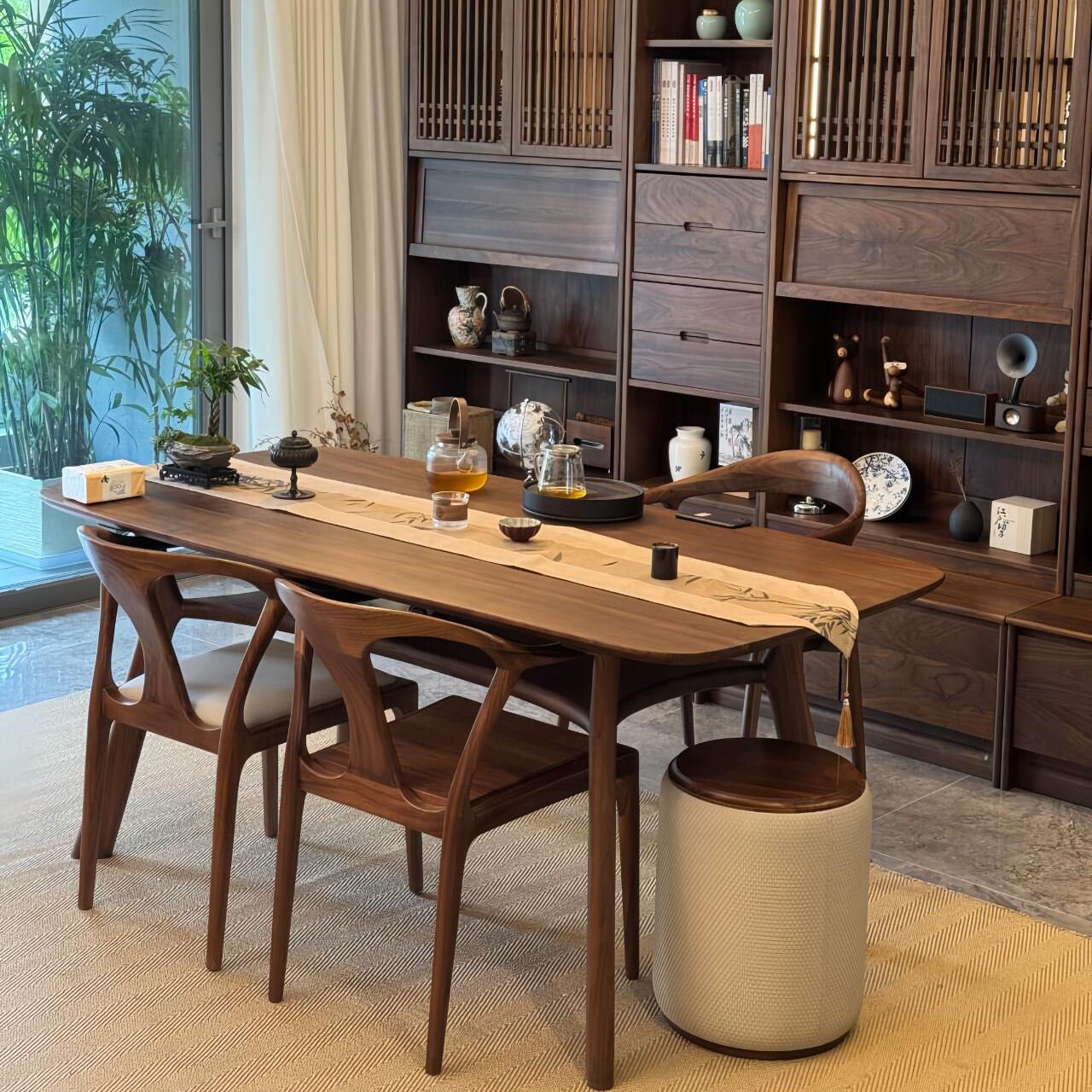 New Chinese-Style Solid Wood Tea Table and Chair Set – Minimalist Design, Suitable for Offices, Hotels, Homestays, Tea Rooms & Home Use, Dual-Purpose as Tea Table and Dining Table