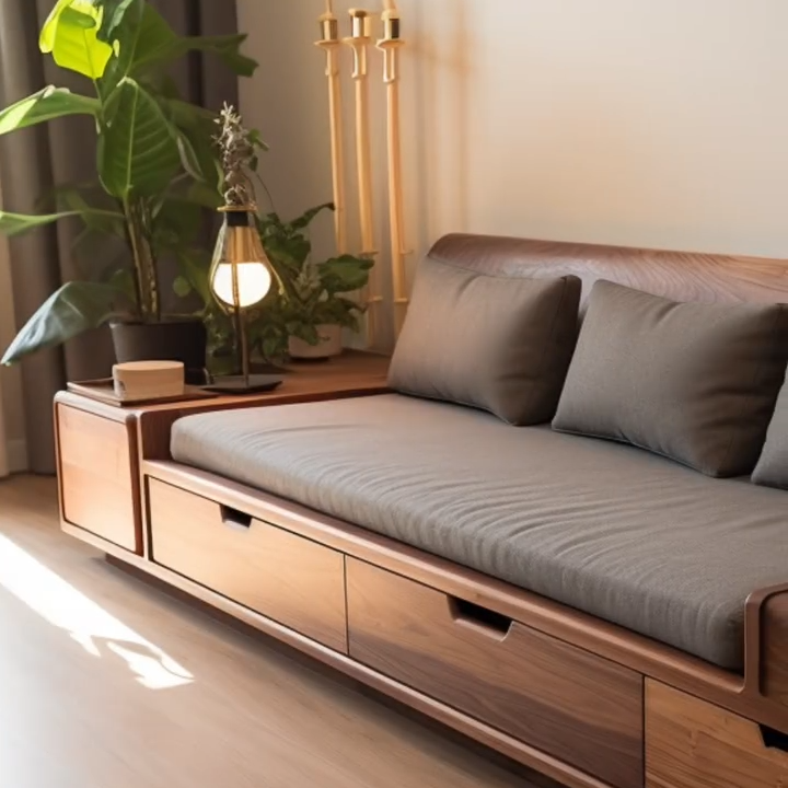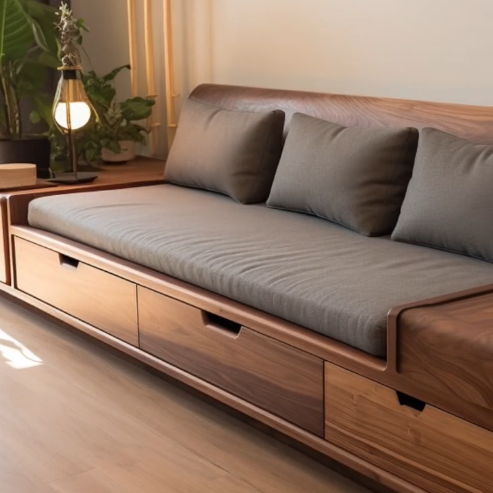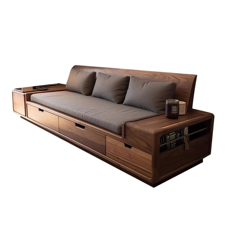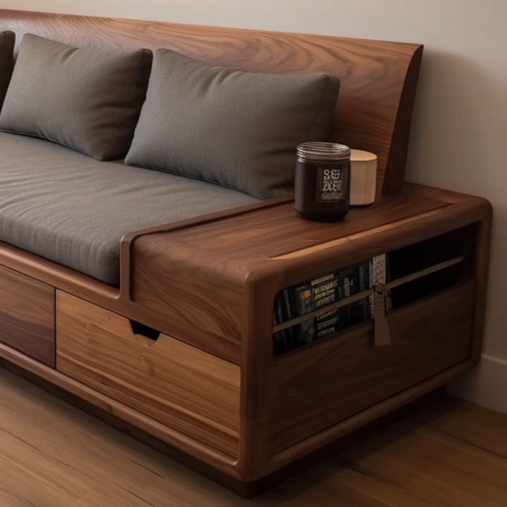 in North American Black Walnut with Drawers: A Light-Luxury Solid-Wood & Genuine-Leather Sofa for Small to Large Spaces, Featuring Minimalist Style
