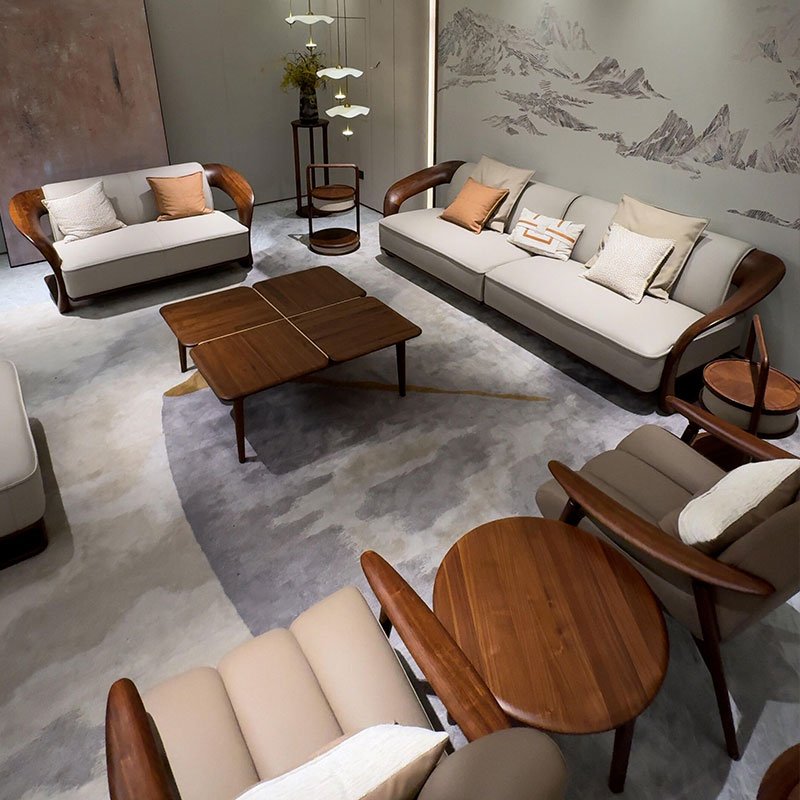 New Chinese Style Walnut Solid Wood Sofa Set
