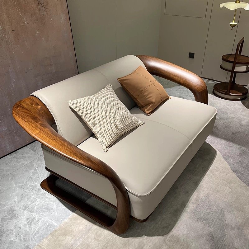 + Free ShippingNew Chinese Style Walnut Solid Wood Sofa Set, Italian Minimalist & Modern Light Luxury Design, Genuine Leather Upholstery, Ideal Furniture for Living Rooms & Villas