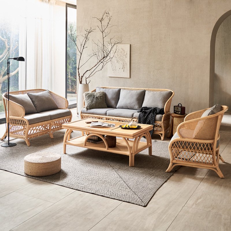 Country Style Balcony Coffee Table, Courtyard Rattan Chair Set, Homestay Furniture