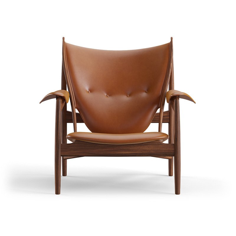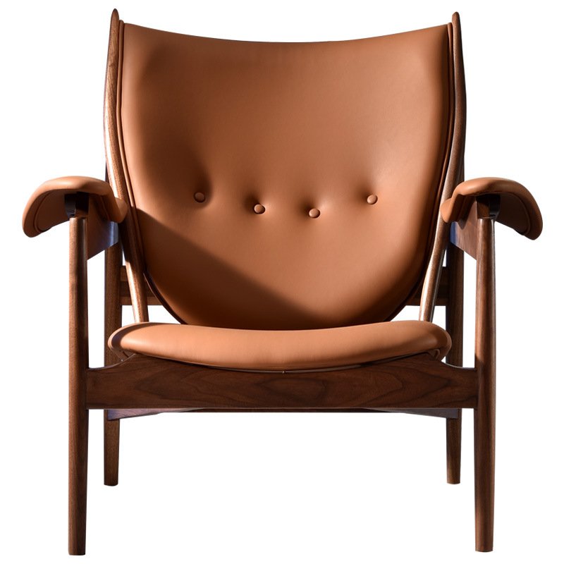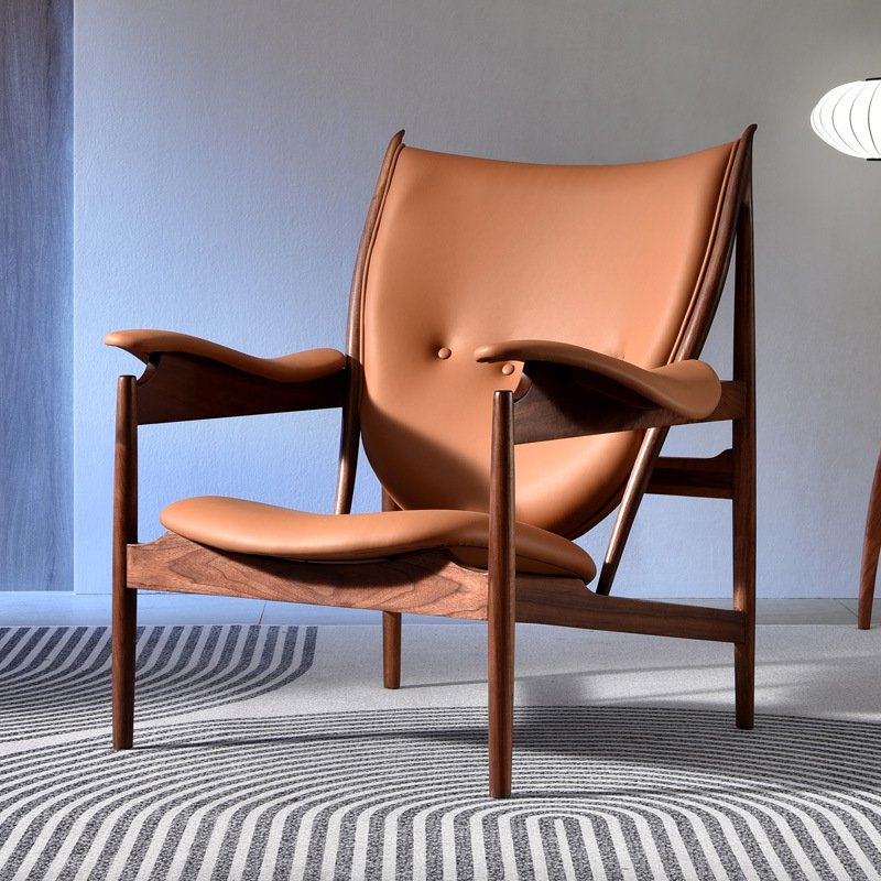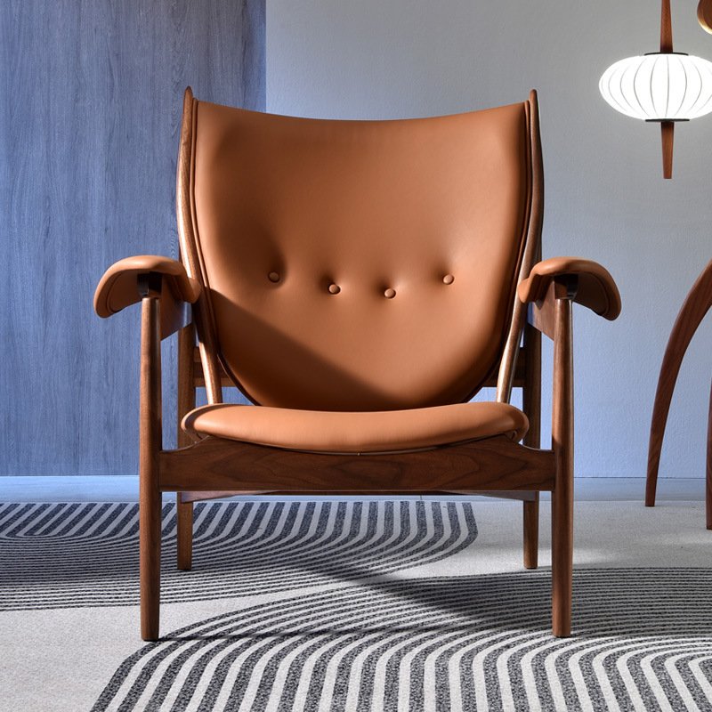 + Free ShippingNorth American black walnut leather chief chair Wabi Sabi style sofa chair retro leisure balcony single person leisure chair