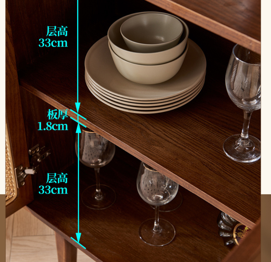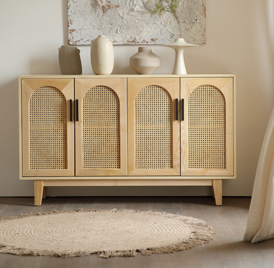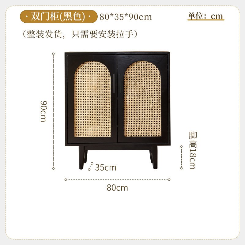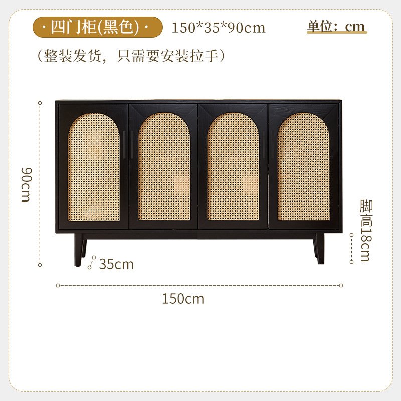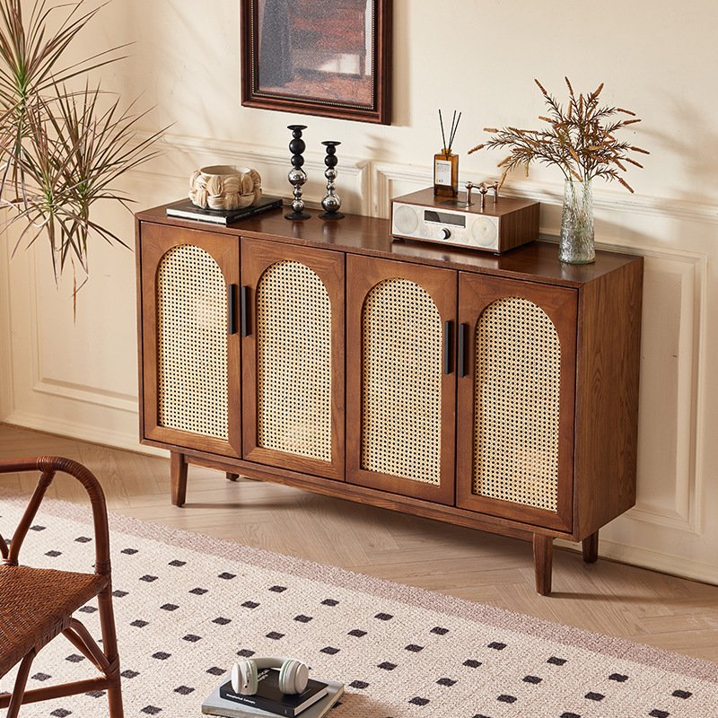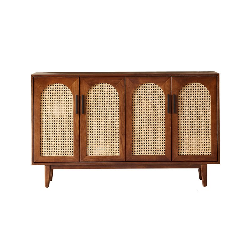 Mid ancient style solid wood rattan woven dining cabinet with four doors storage cabinet for homestay and hotel bedrooms multifunctional storage cabinet