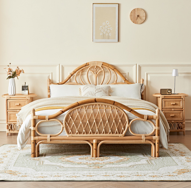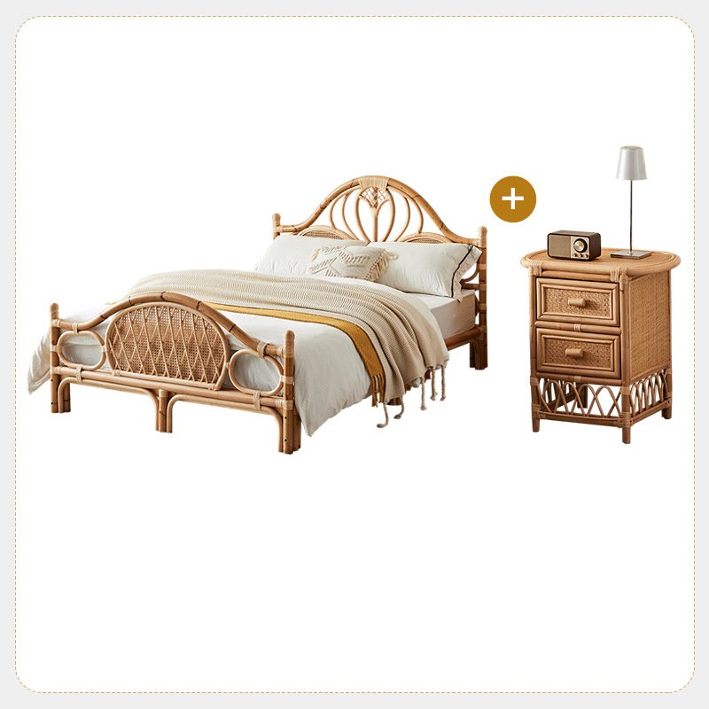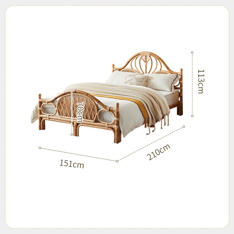 + Free ShippingWabi-Sabi Style Handwoven Double Bed, 1.8m Large Bed for Home Bedrooms,