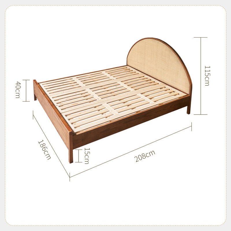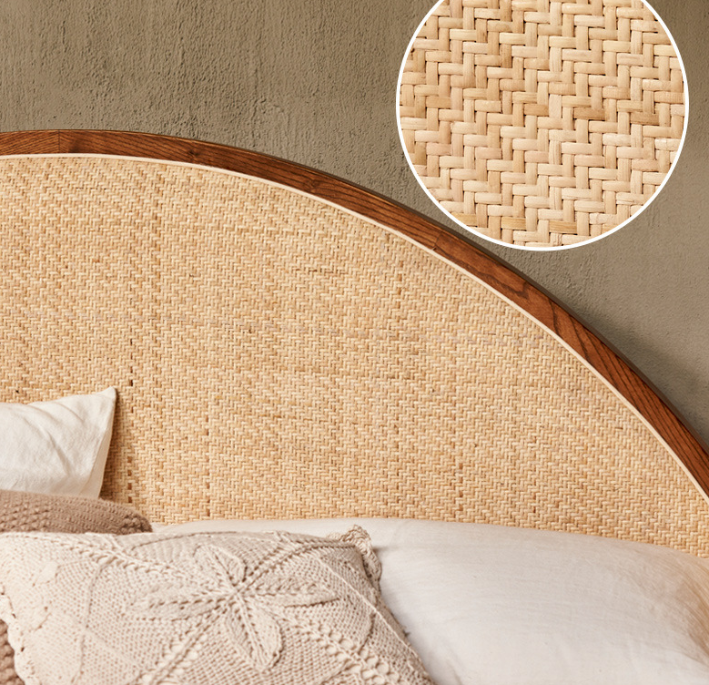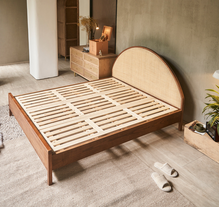 Wabi-Sabi Style Rattan-Woven Ash Wood Solid Wood Bed