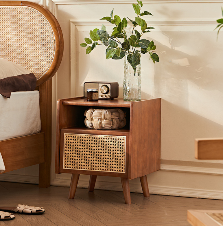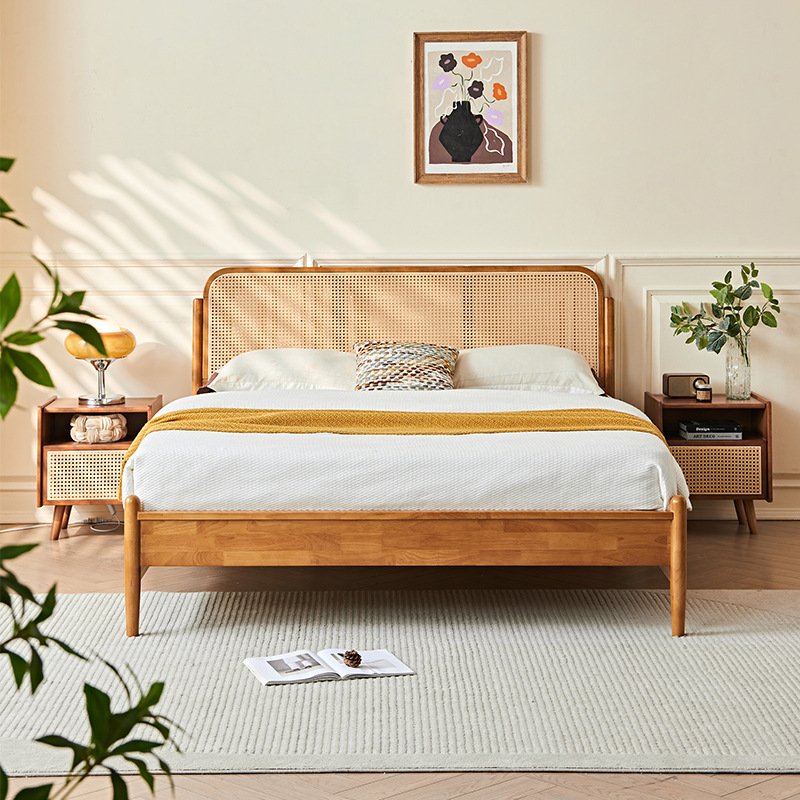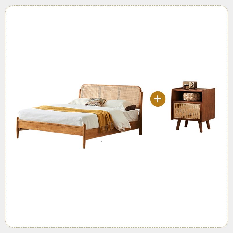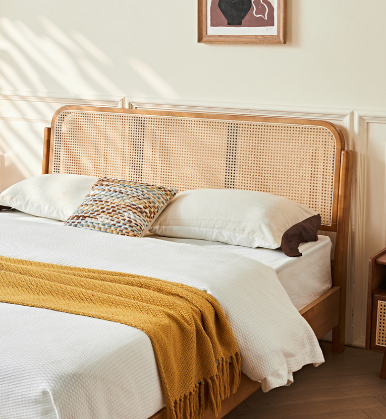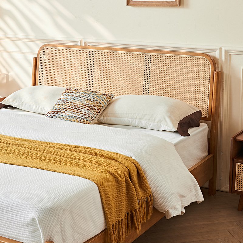 Wabi-Sabi Style Rattan-Woven Backrest Wedding Bed
