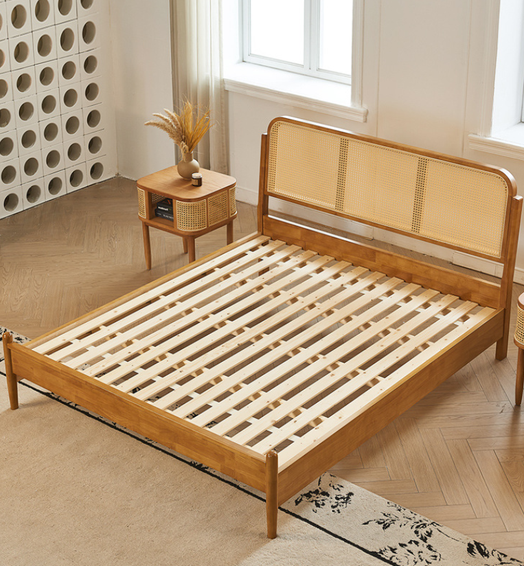 Wabi-Sabi Style 1.8m Rattan-Woven Backrest Wedding Bed,