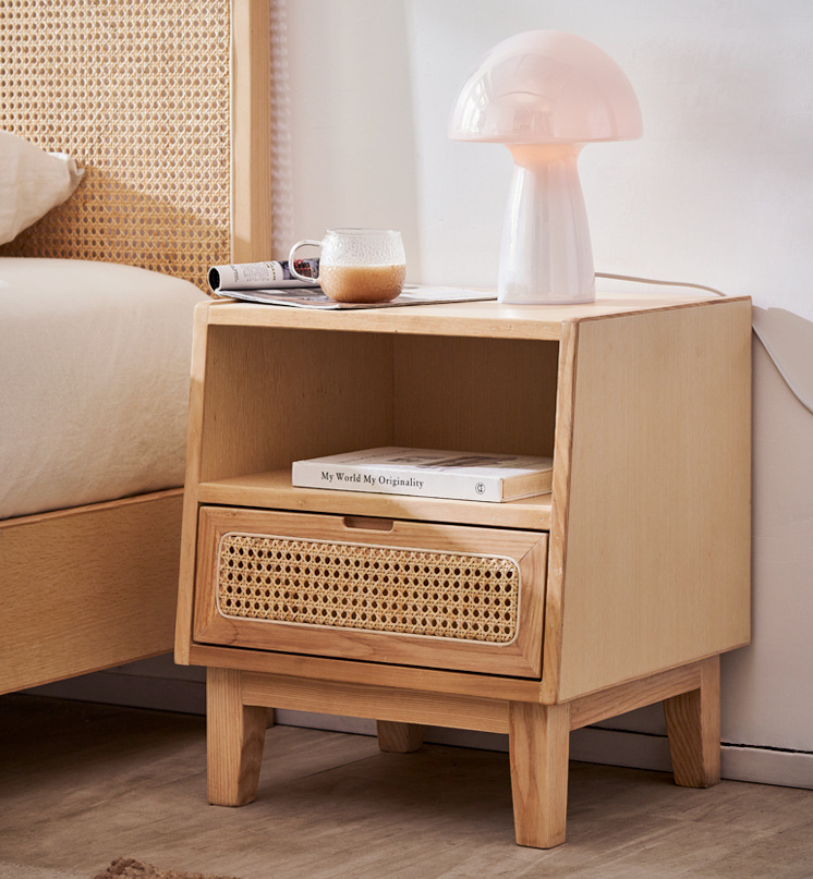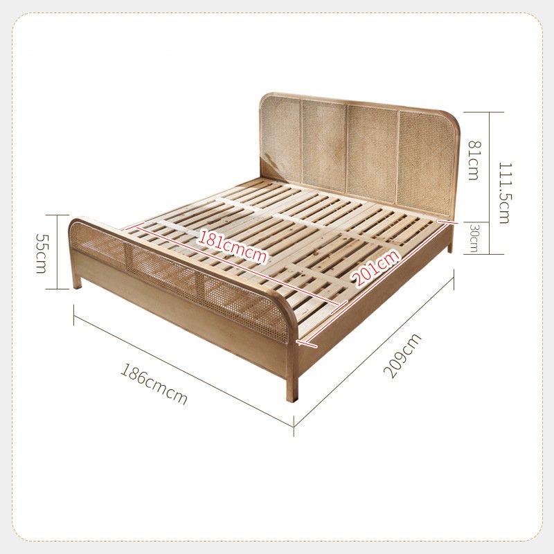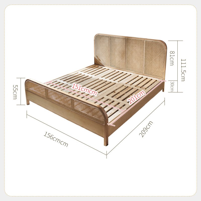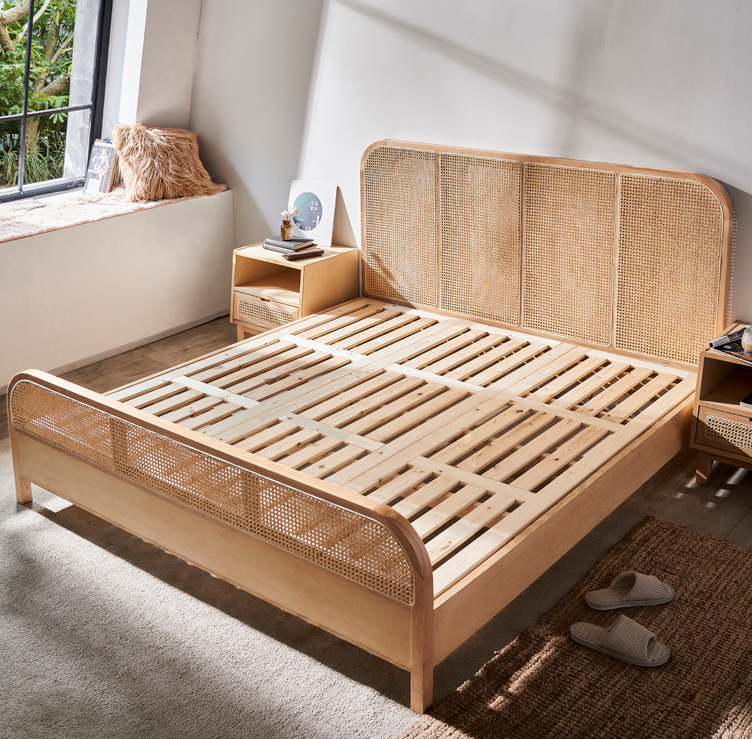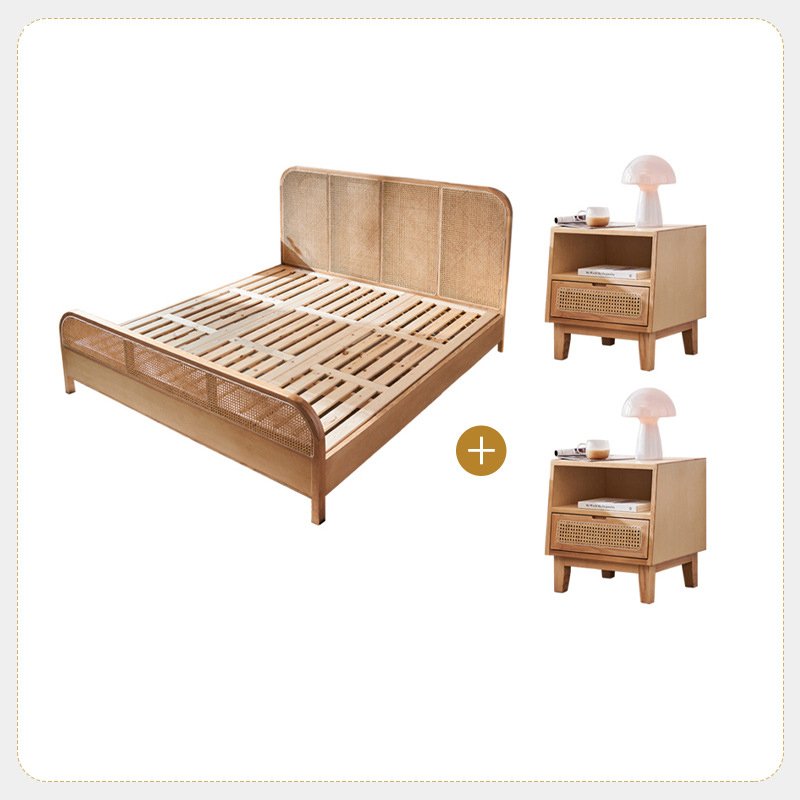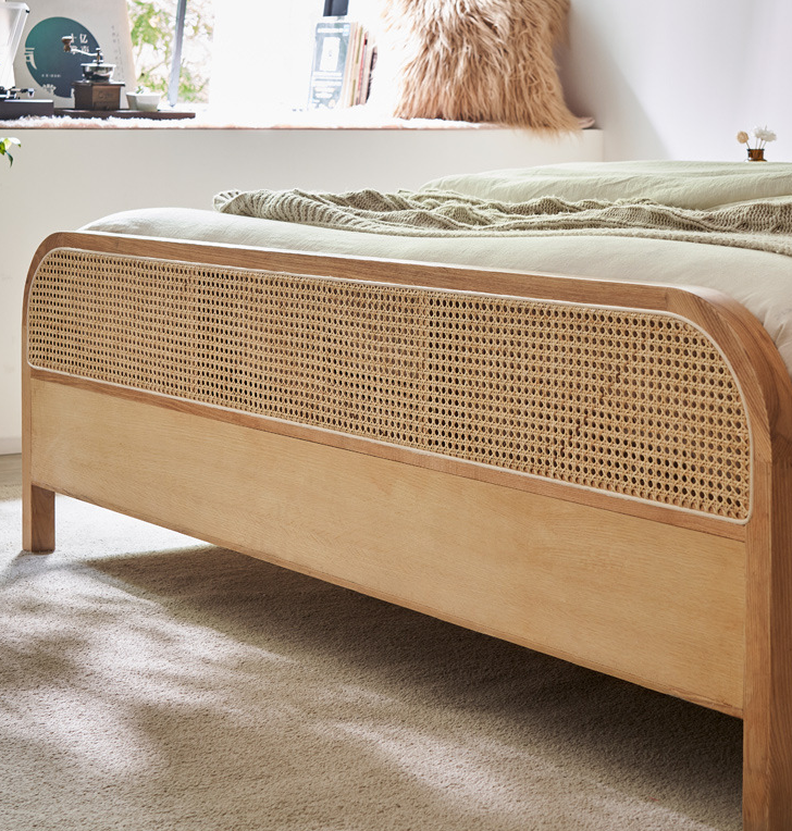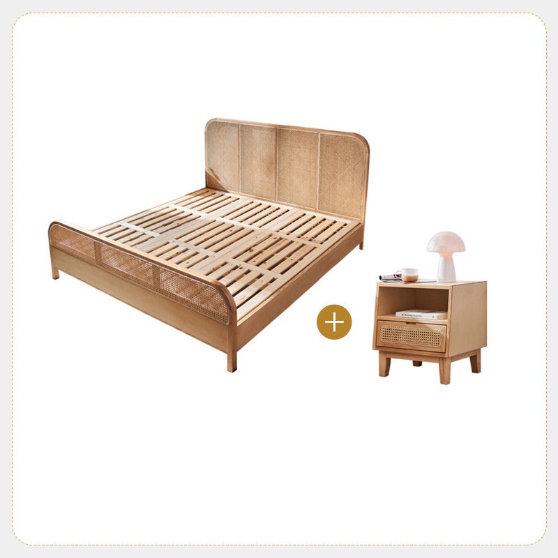 Wabi-Sabi Style Rattan-Woven Solid Wood Bed